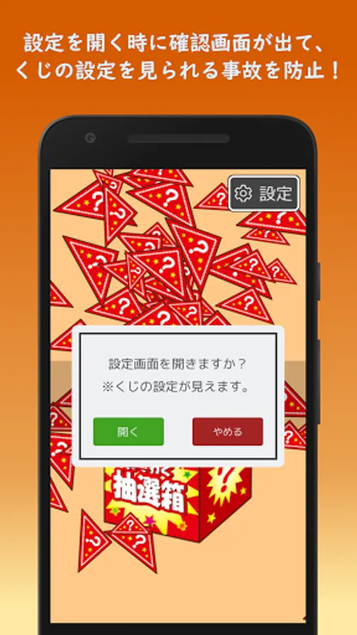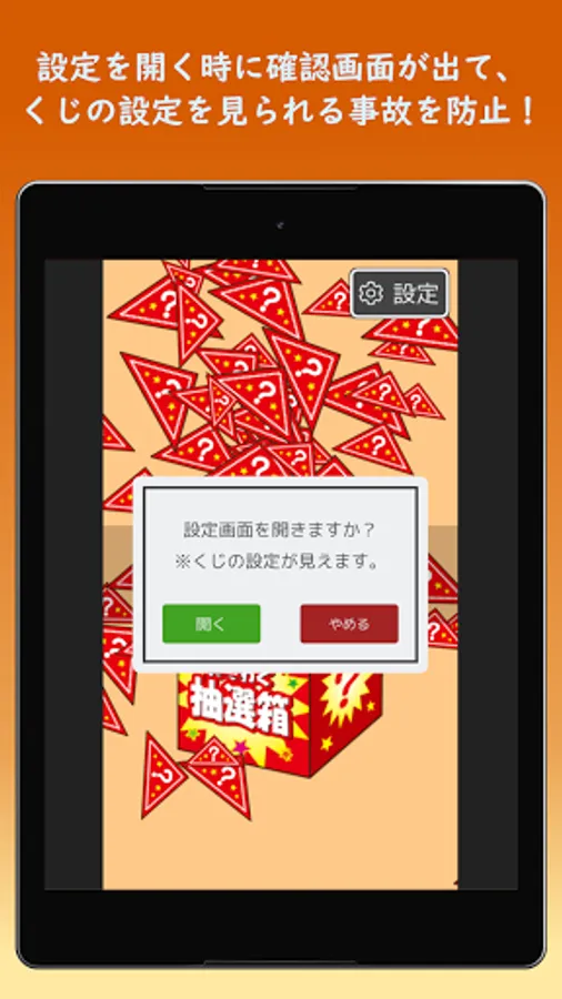 ・ A confirmation screen will appear when you open the setting screen, preventing accidents where you can see the contents of the lottery!