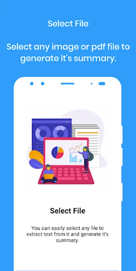 * It can extract text from selecting any image or pdf file, and generate its summary.