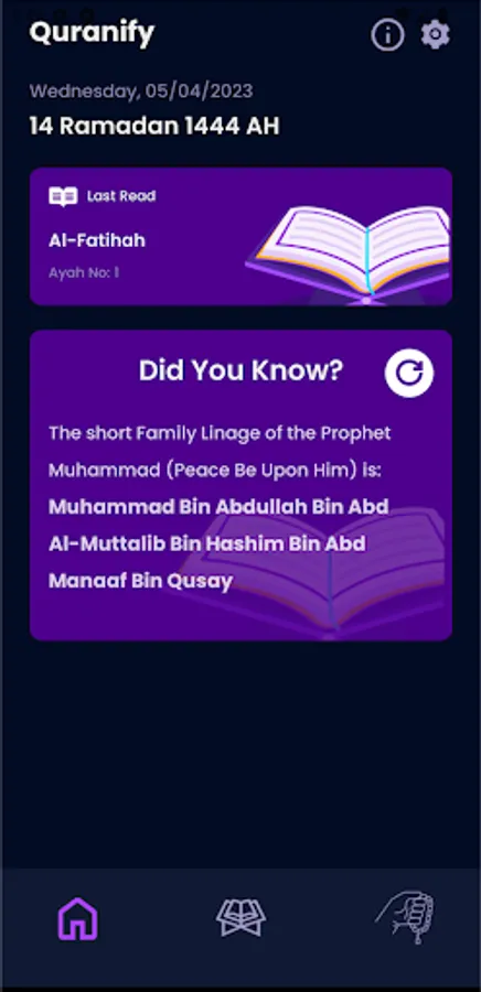 Thirdly, the app includes "Did you know" information, which provides users with interesting facts and trivia about Islamic history and culture. This feature promotes knowledge and understanding of Islam among users.