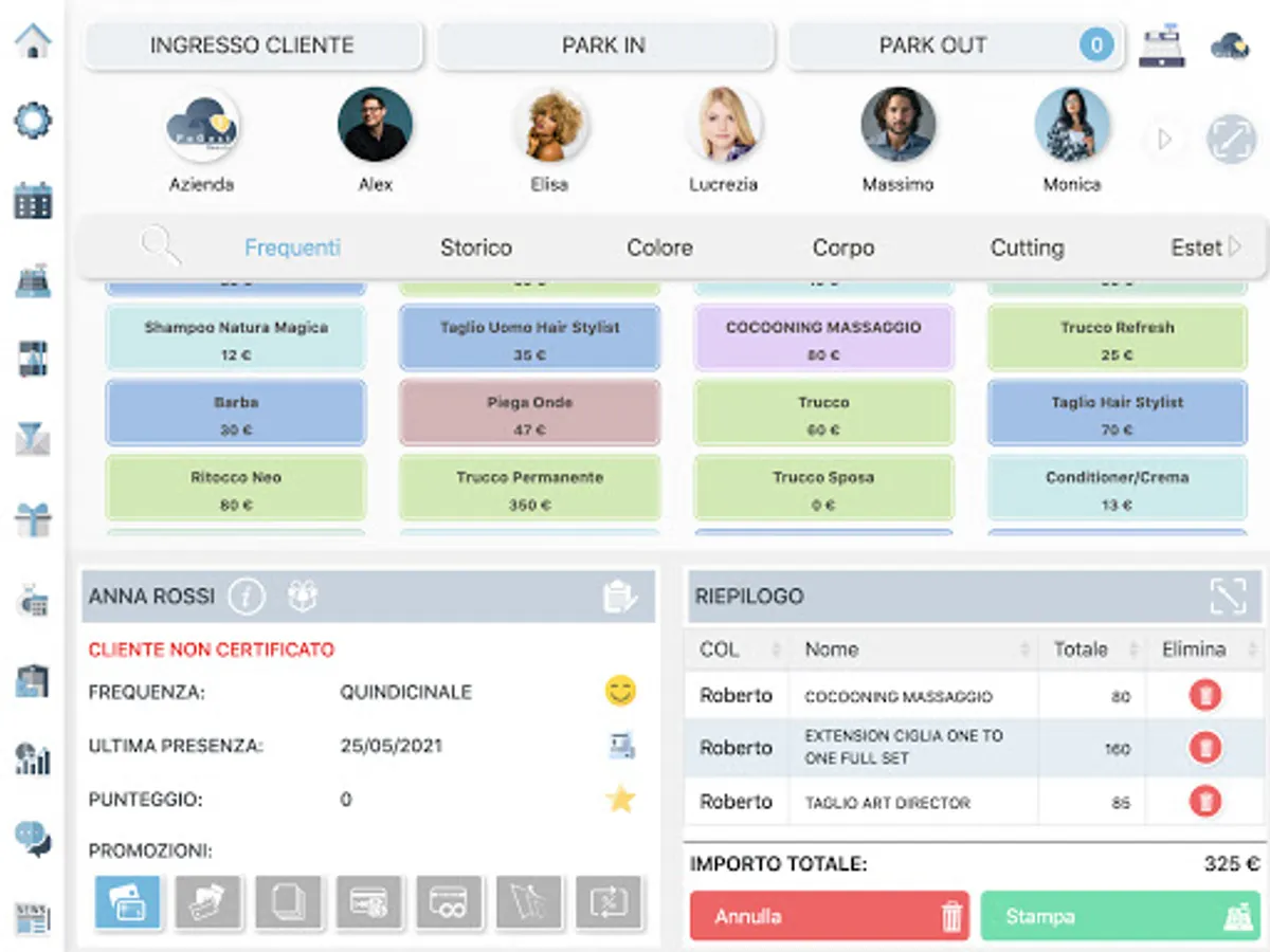 Customer management, statistics, detailed analysis, marketing, expenses, inventory, customer history and cash register.The application can be used by both customers and salons.