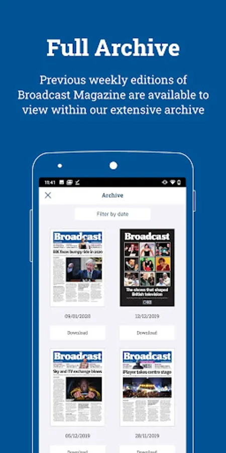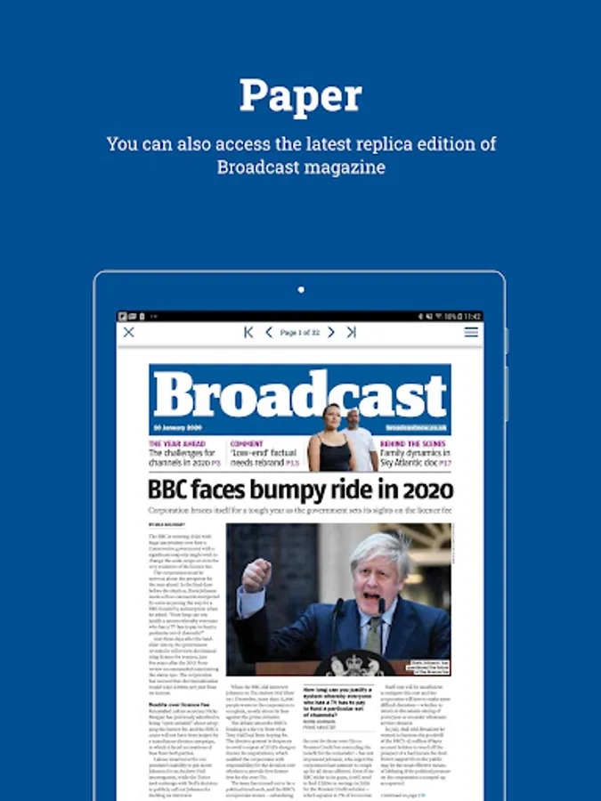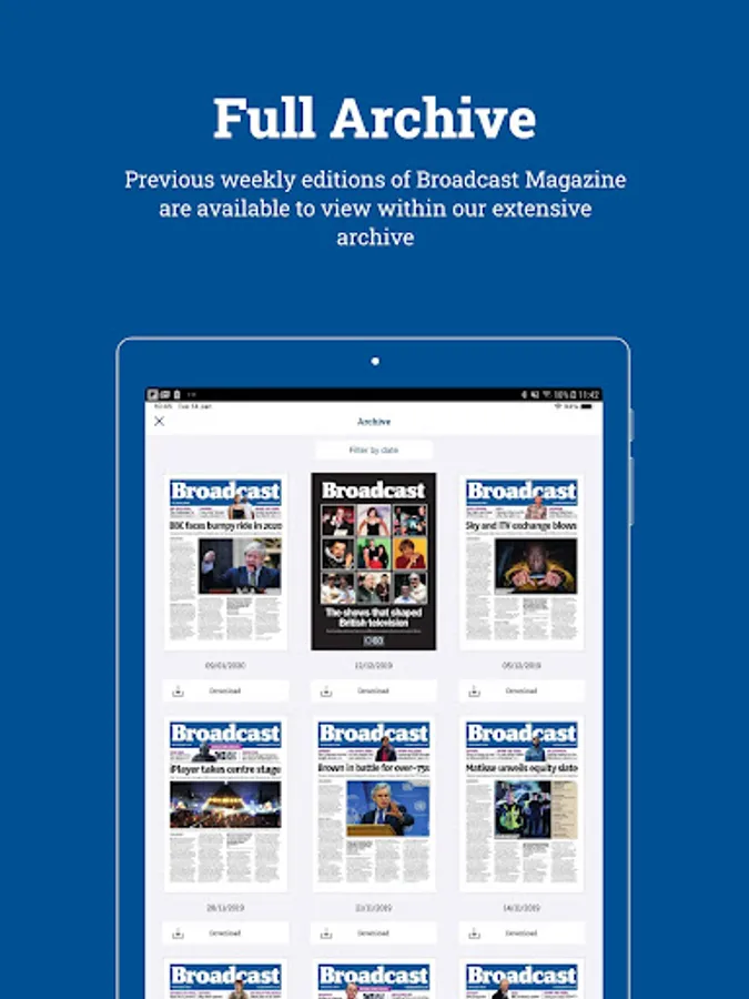 • Broadcast – download the latest issue to your tablet App and read on or offline