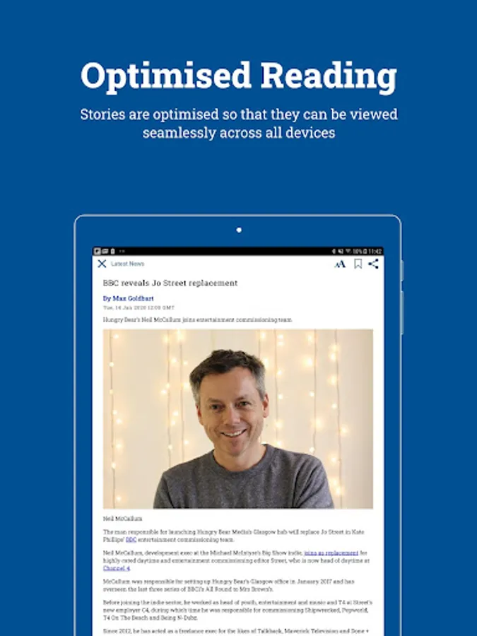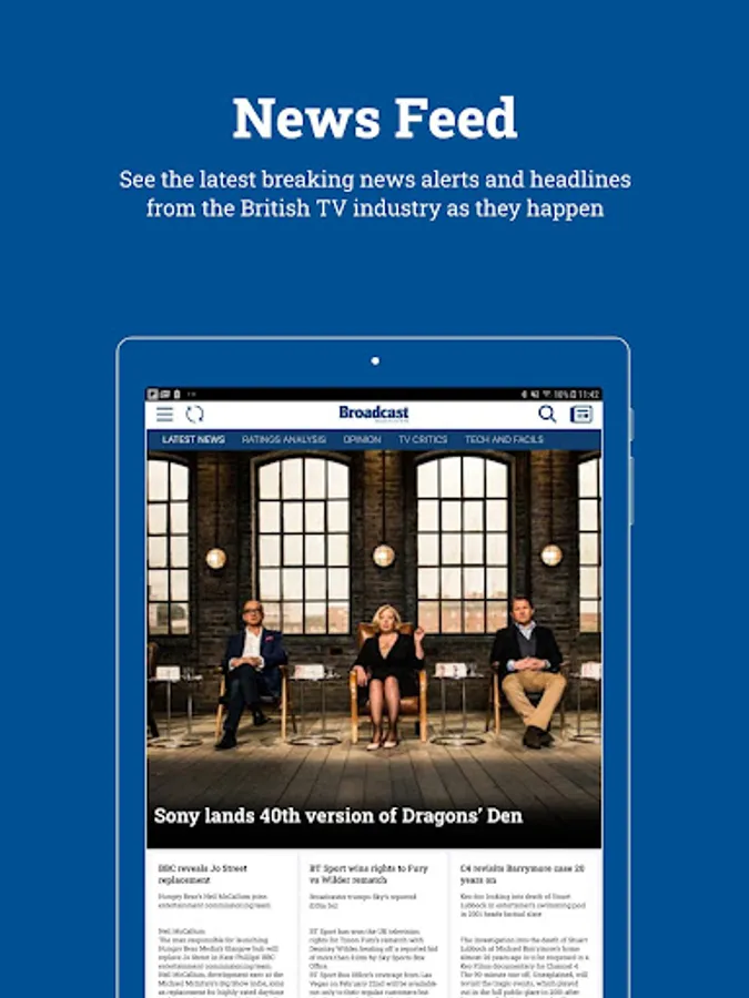 The Broadcast tablet App provides a powerful and convenient way to keep up with the very latest in the UK Broadcasting industry.