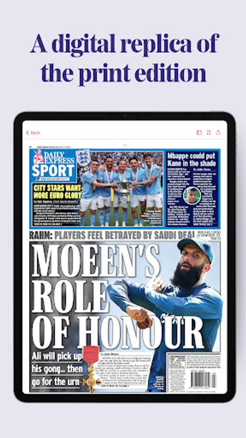 Enjoy an exact replica of the “Sunday and Daily Express” on your device everyday...