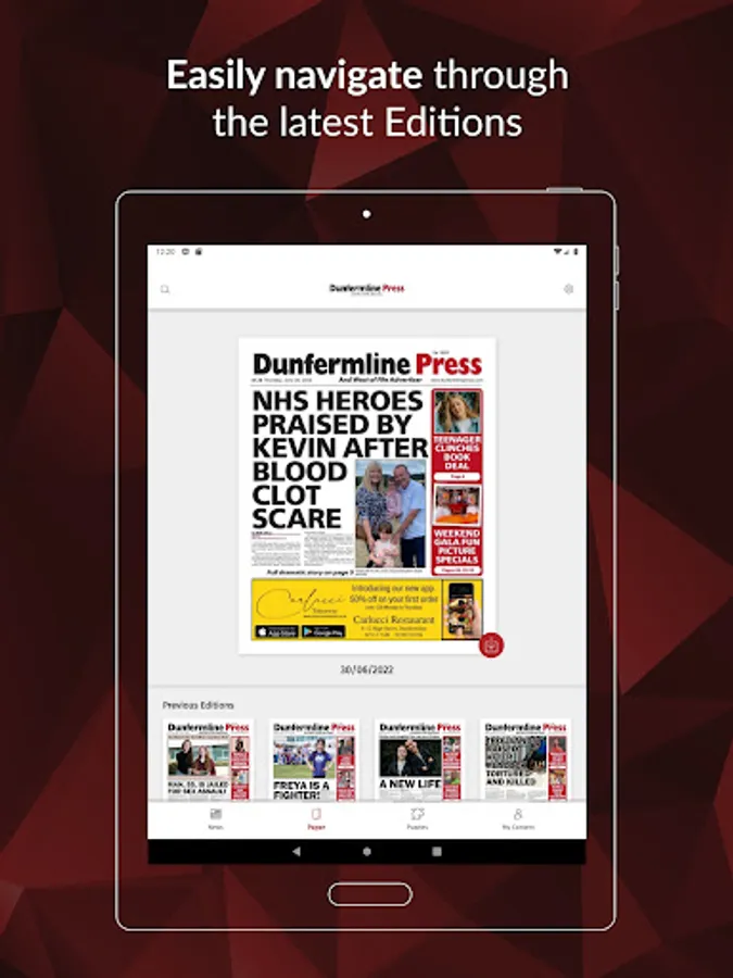 The Dunfermline Press app is the best way to keep up to date with all the breaking news, sports and events in Dunfermline and gives you the following great features…