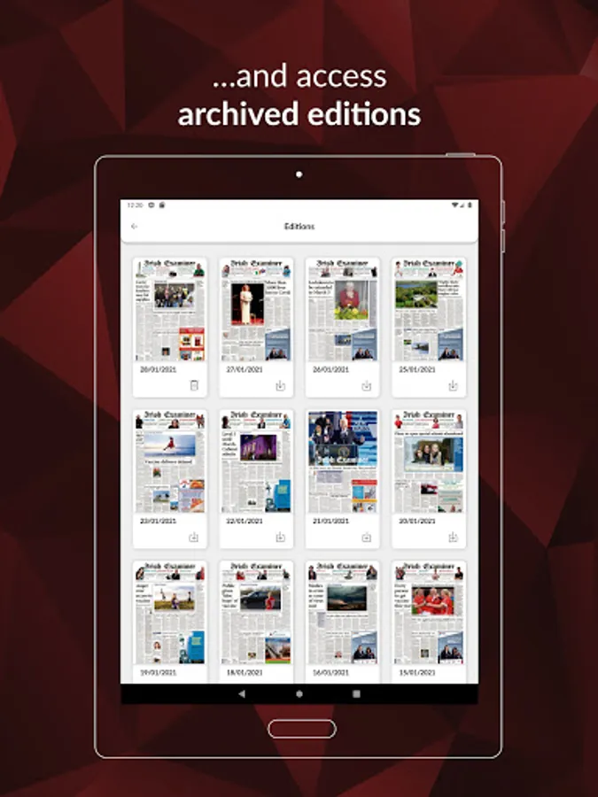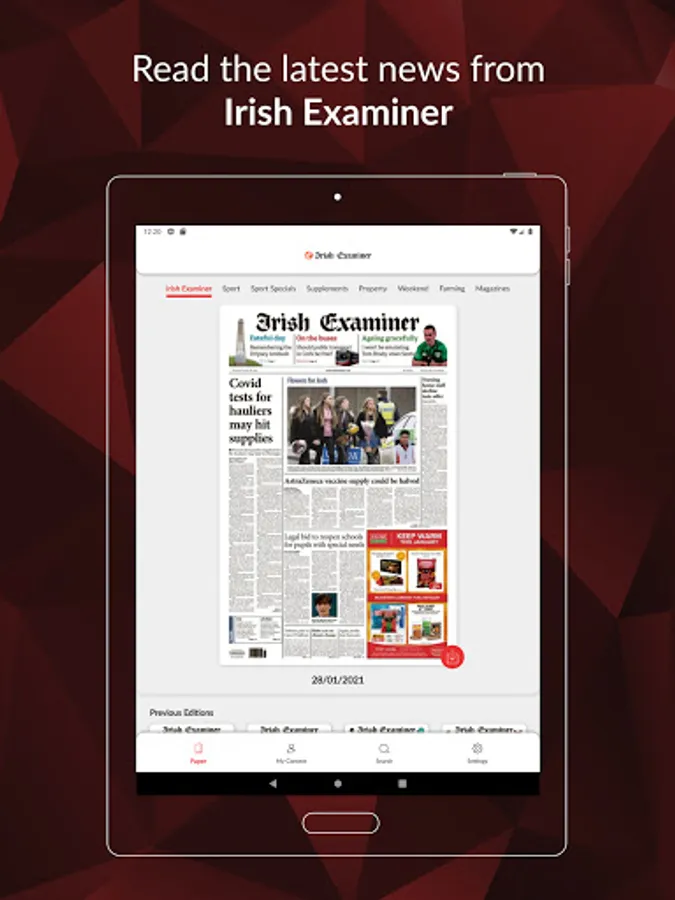 The Irish Examiner app is free to download, but to read the paper and supplements you will need to purchase a subscription via Google Play. The packages available are: