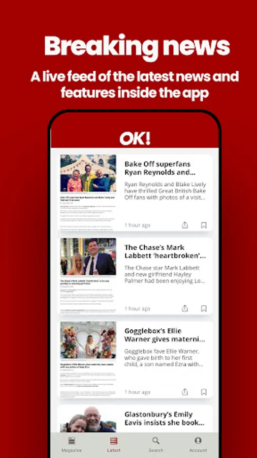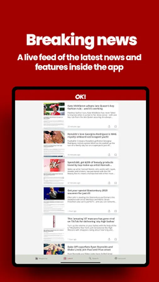 • Full OK! Magazine editions – Read your automatically updated magazine by scrolling and swiping through individual or double page spreads.