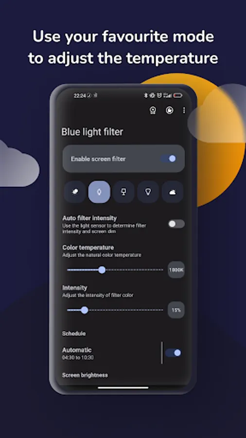 Screen shift to night mode to protect your eyes and relieve your eyes in no time.