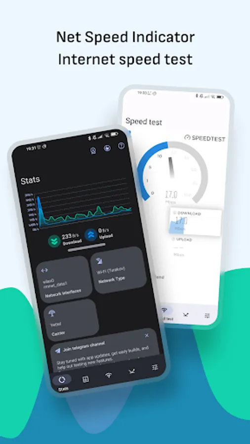 Check current Download/Upload speeds directly from your status bar, notification, or in-app itself, available in kbps, Mbps or KB/s, MB/s