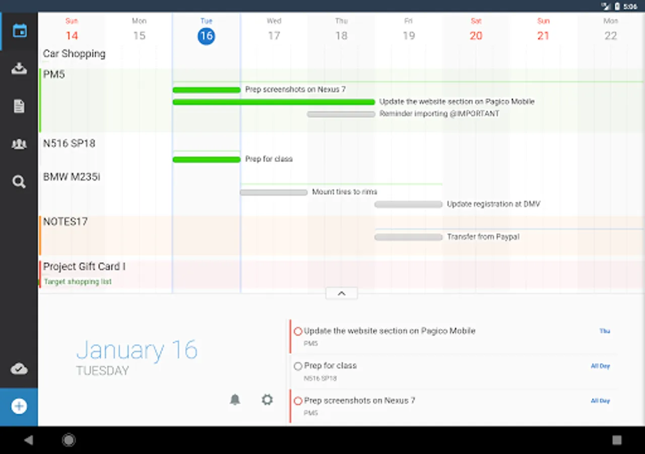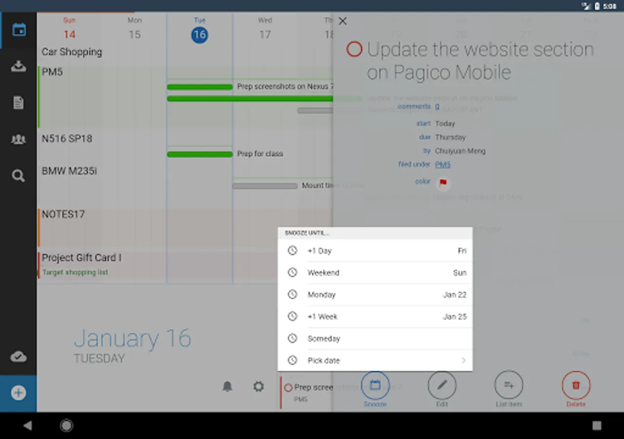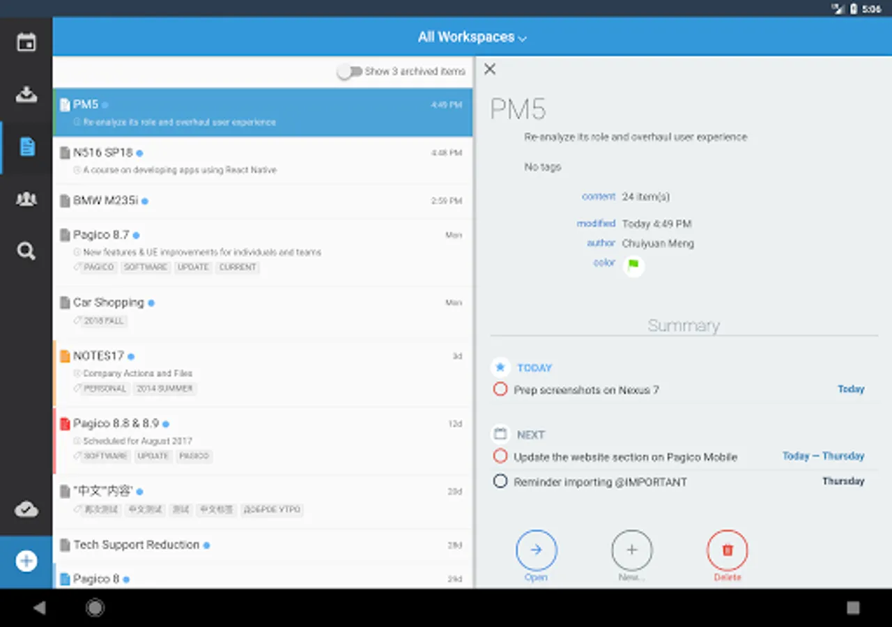 Pagico Mobile is a companion app for the Pagico on your computer. Compared to traditional todo apps, the Pagico suite does much more than todo lists: it handles text notes and files as well! This makes it easy and realistic for real-world planning, where you can keep relevant things together: action items, meeting notes, web links, and documents, all stored by projects (or contact profiles).