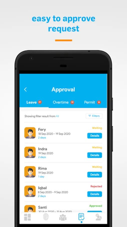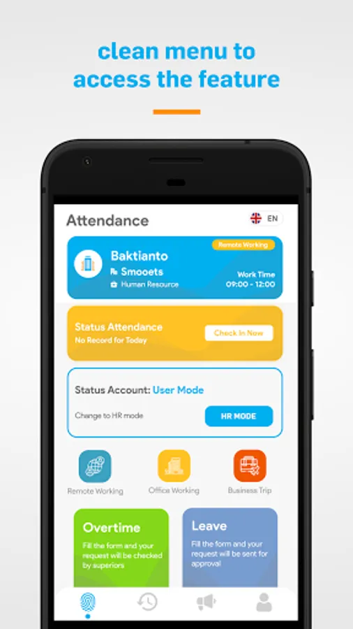 Smart application to make it easier for employees and managers to organize attendance.