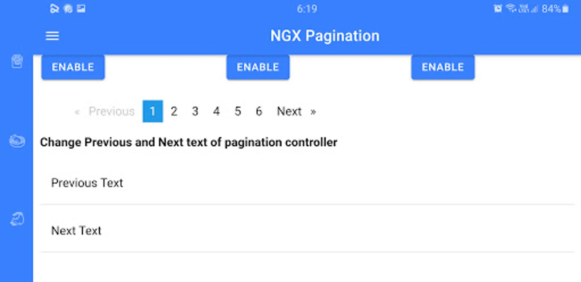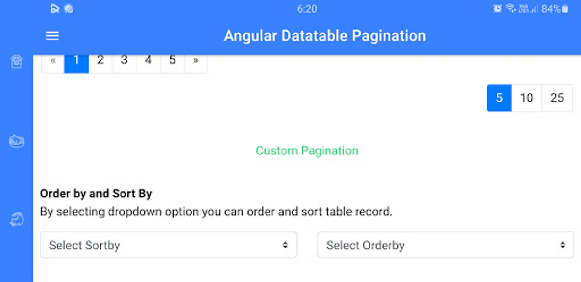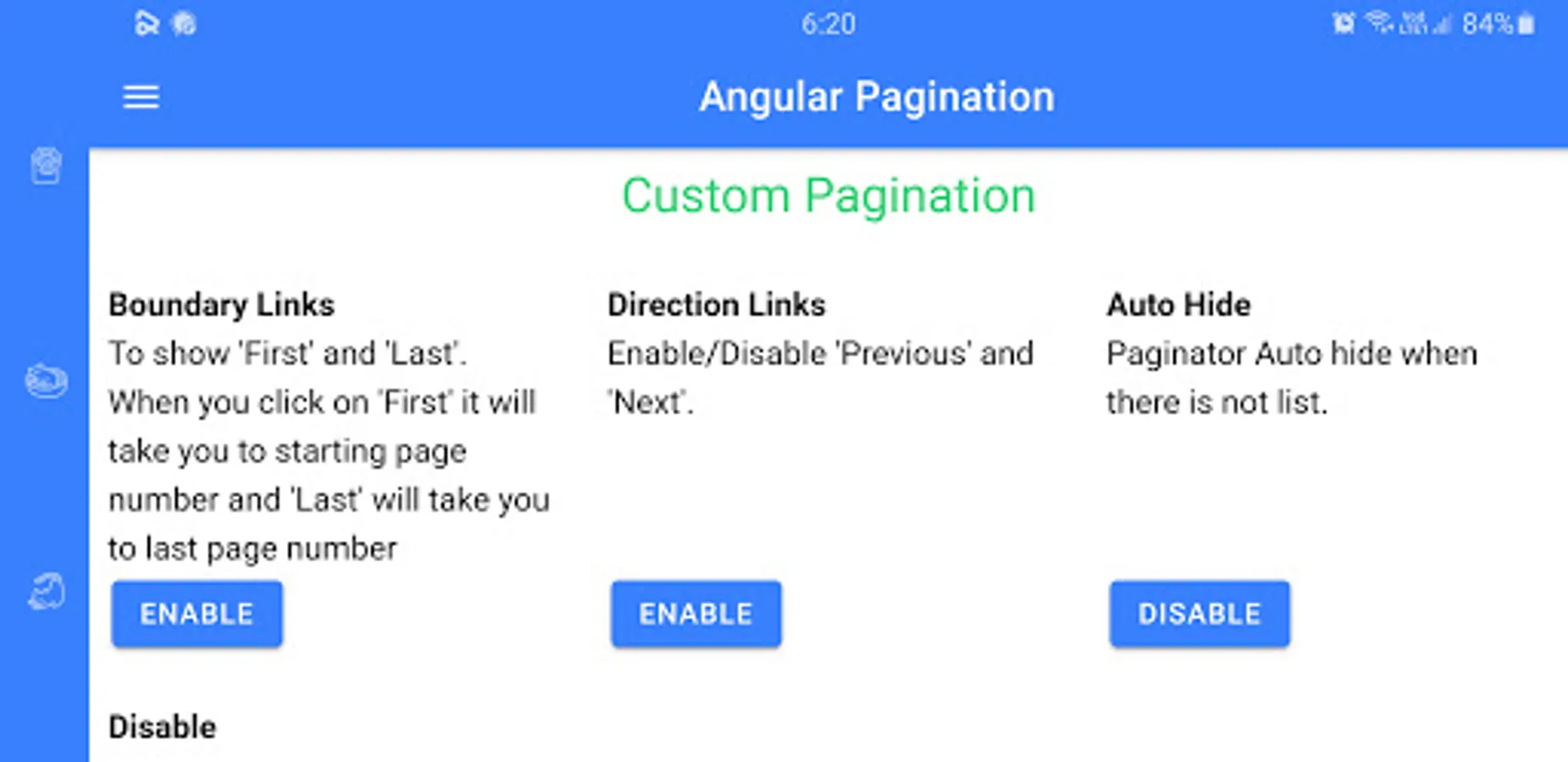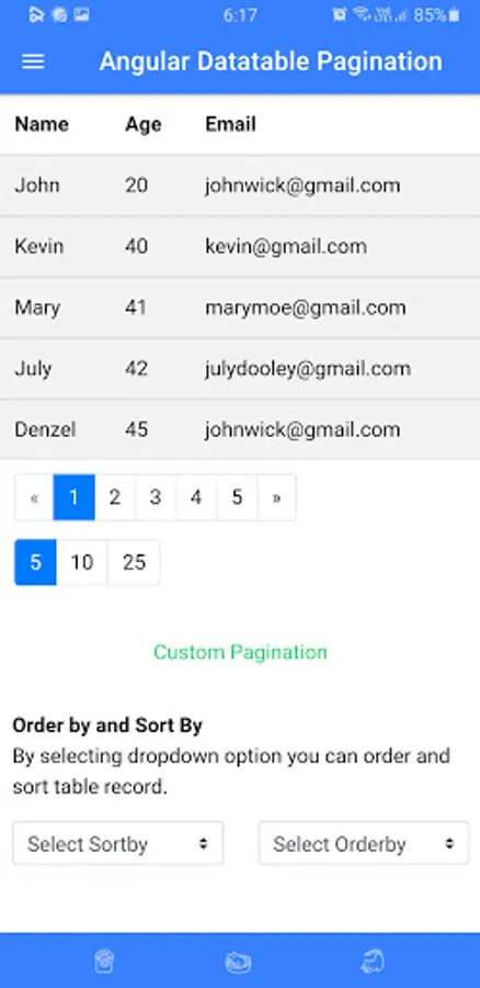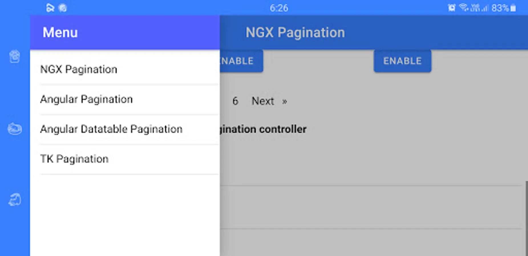 This app contains different pagination packages. This app allows the user to customize pagination and to see the features of different paginations. You can search these packages on any package manager like NPM and the name of the package is given on its title. Programmers can use it with any languages like angular etc. This app will save your time to see most features of pagination on an app then use it on your project.