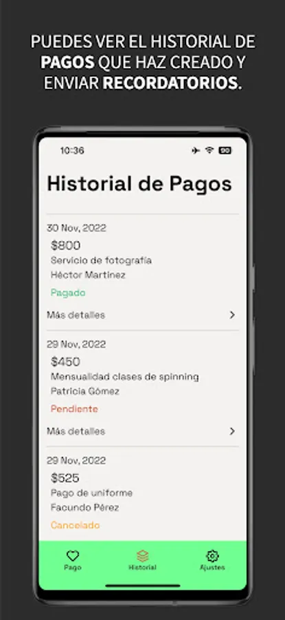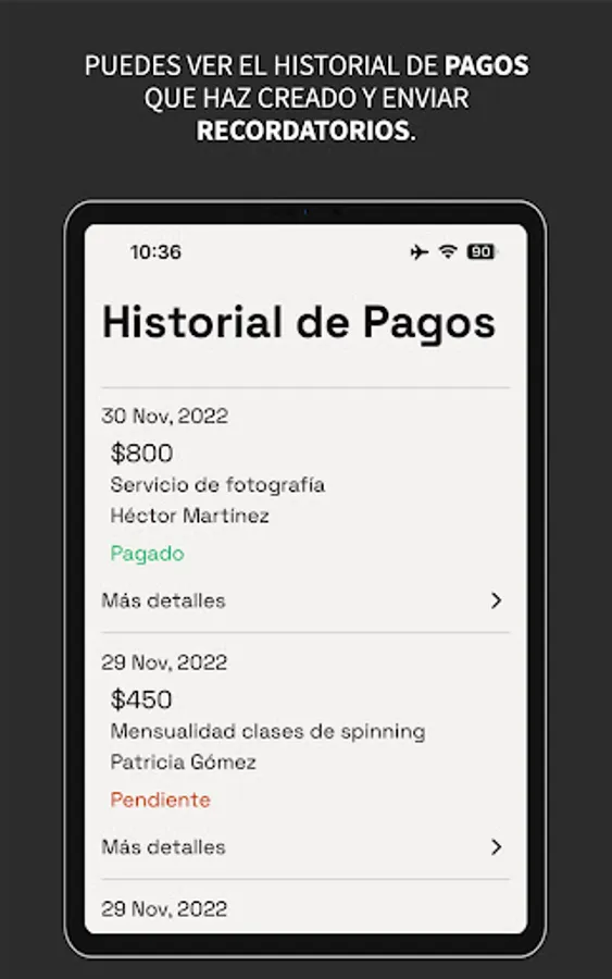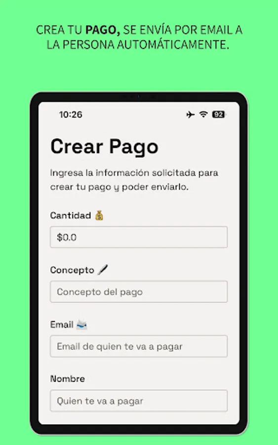 With PagoHoy, you register in 5 minutes, create a payment and it is automatically sent by email to the person who owes you money. You can also share the payment through social networks or WhatsApp. The person opens the link you shared, pays with their bank card and your money arrives to the account you indicate.