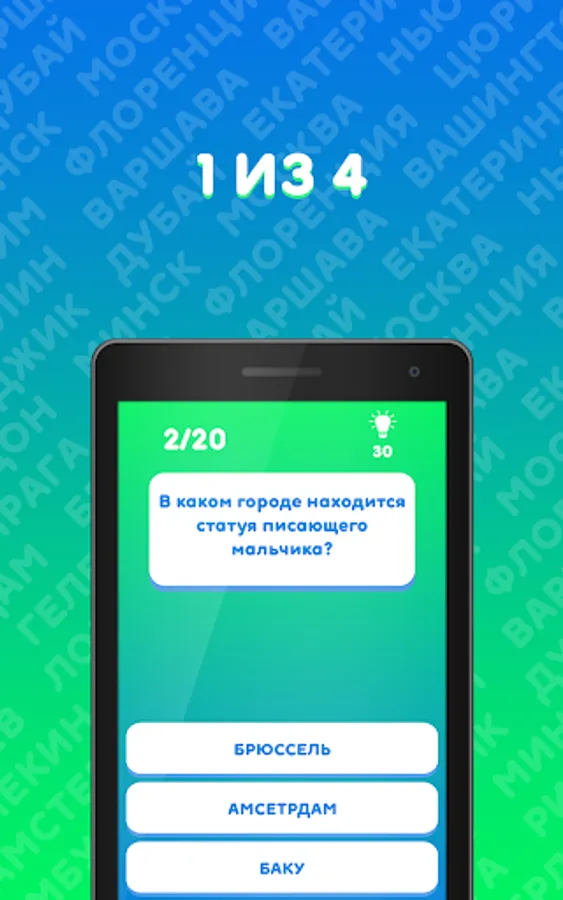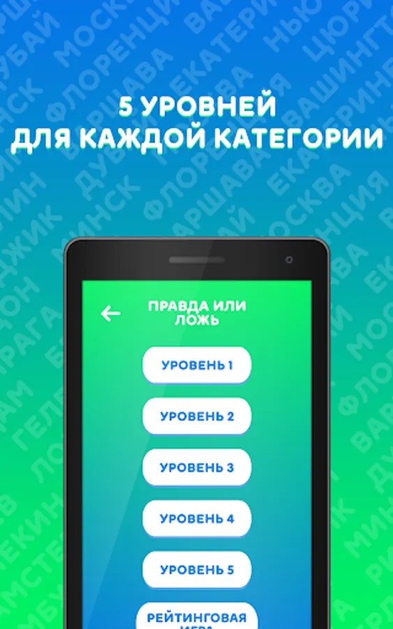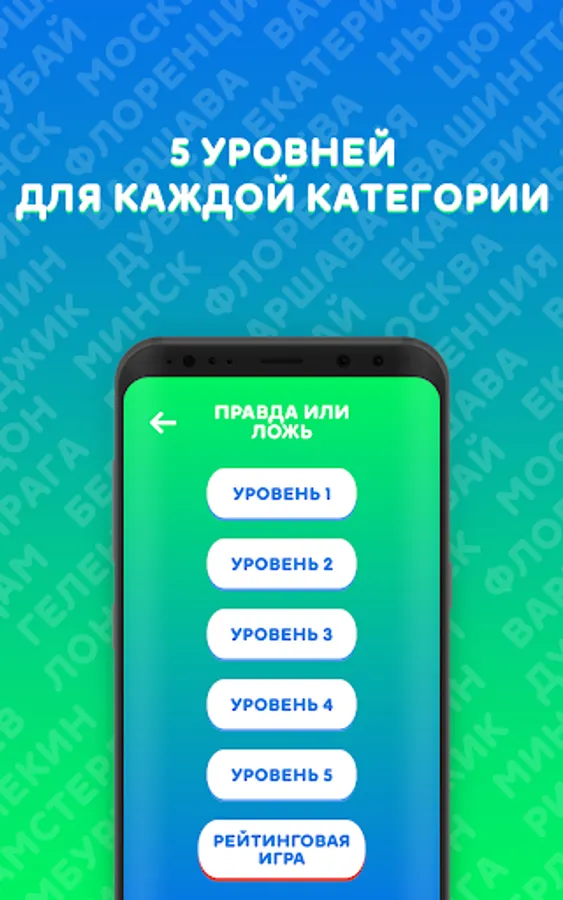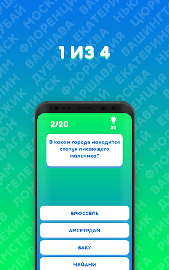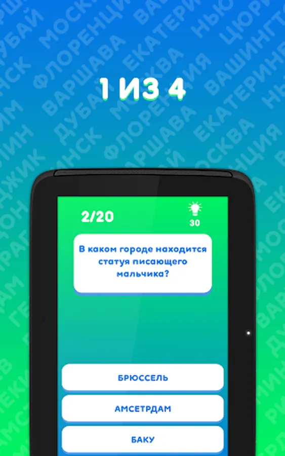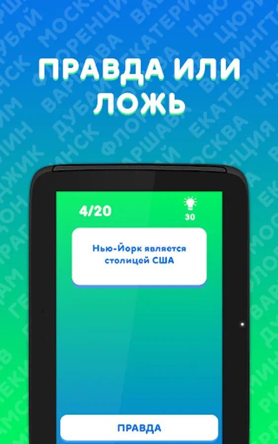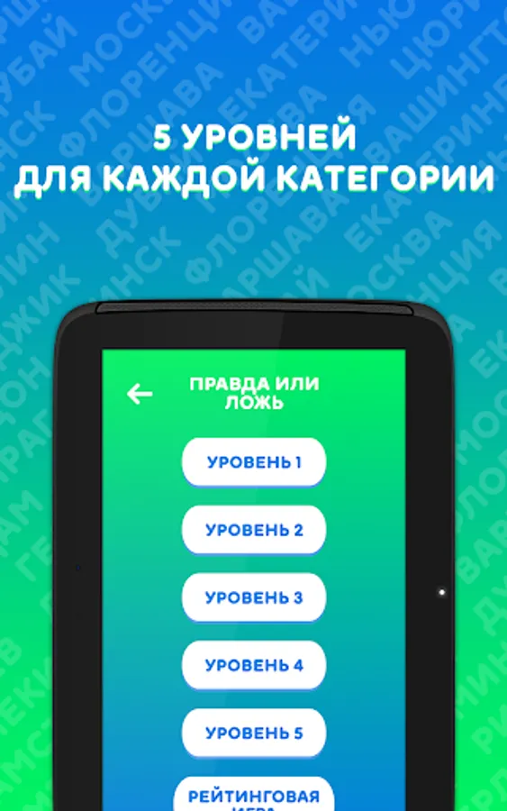 In the application Quiz: Cities and Capitals of the world there are several game modes: