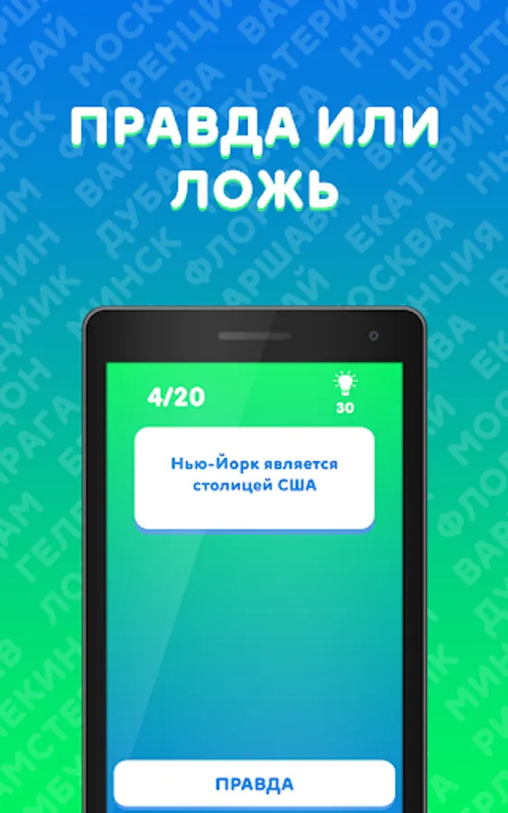 ● TRUE OR FALSE - in this category you have to guess whether this statement is true or not.
