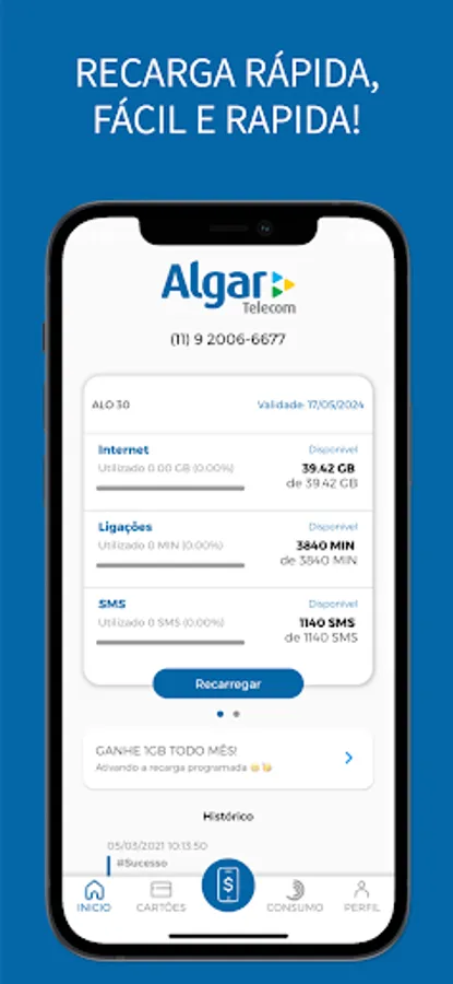 The Application is for you, the user, to access recharge services, check balance (voice, internet and recharge) and others, quickly, simply and whenever you want.