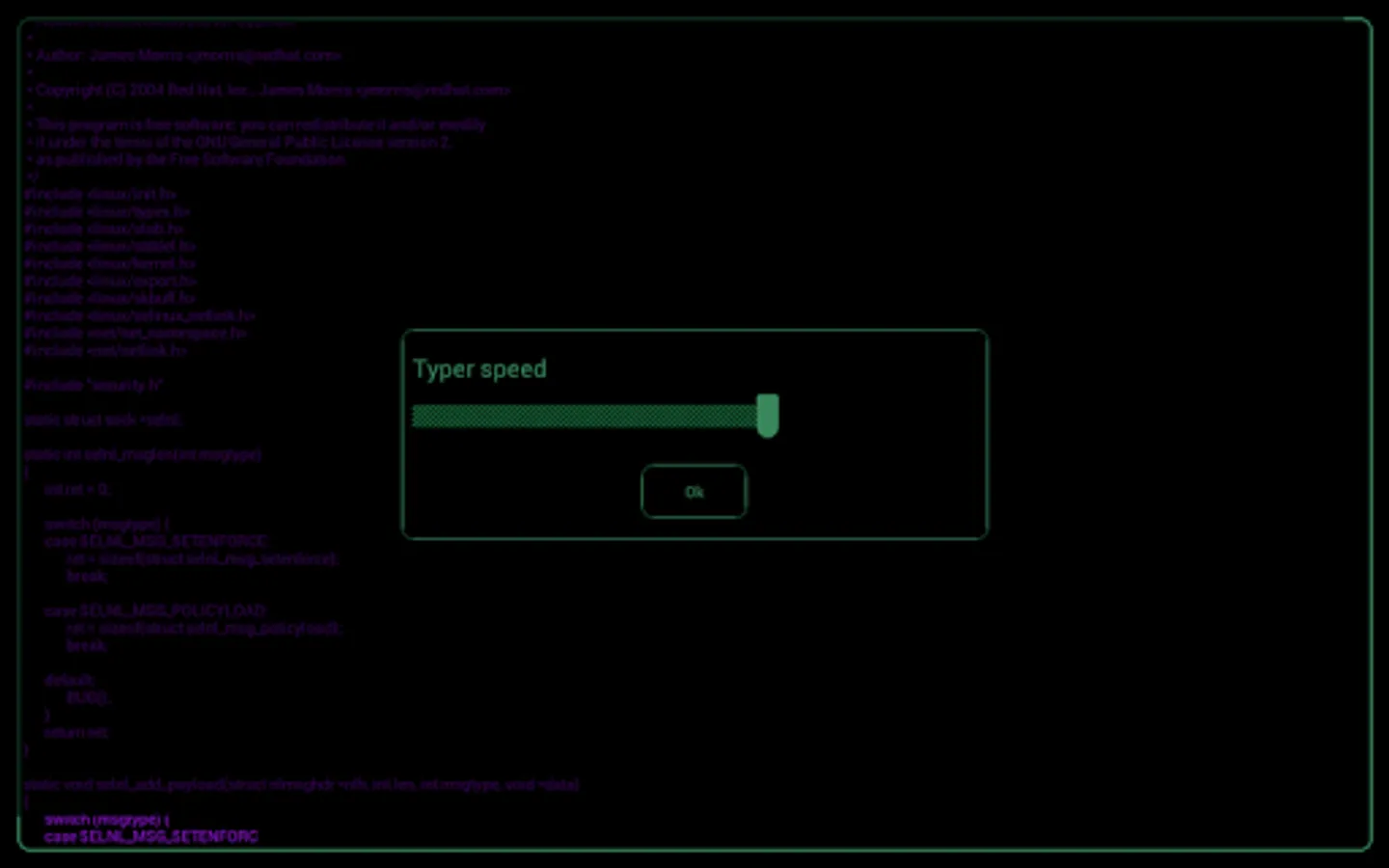 Became a hacker in a few seconds. Type as fast as you can and try to get access to the "extra secret" source code files. With each new source file time is running faster and faster. So its better to hurry up!