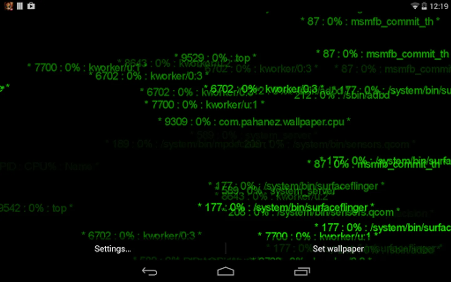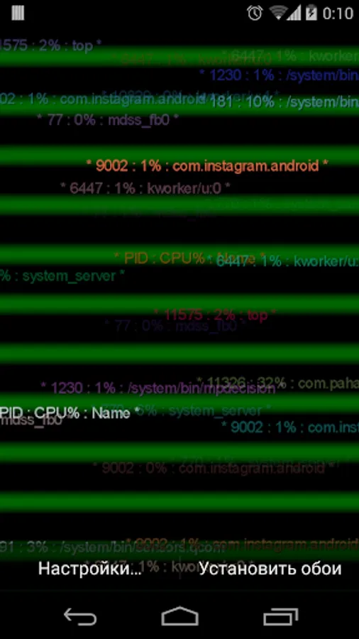 Wanna know which app consumes CPU most ? This wallpaper shows you the CPU load from Unix "top" command output.