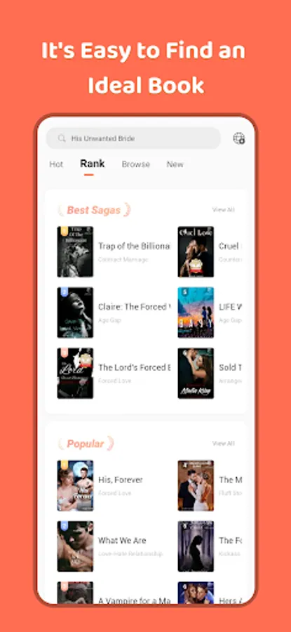 ● Fine-sorted novel collections, such as Paranormal, Romance, Fantasy, etc., which can definitely provide you with stories that you like.