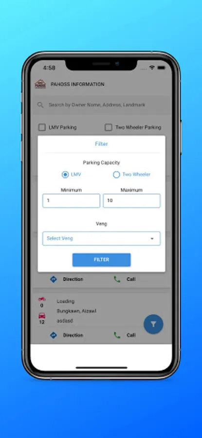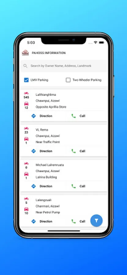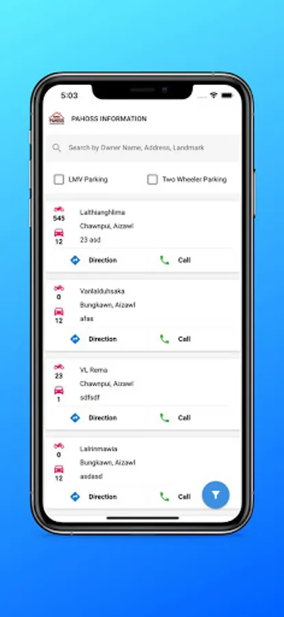 This app provides basic information about parking houses supported under PAHOSS scheme under Govt. of Mizoram. The parking house basic information along with their location are listed. User can easily contact and get directions of the parking houses through the app.