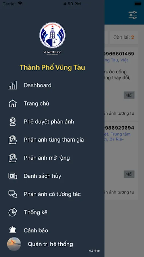 Application VUNGTAUIOC-Gov (Field Management - Reporting Officer) helps to support work in management, monitoring and handling of reflection.