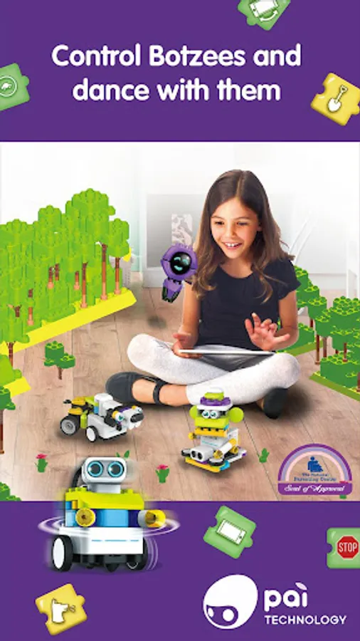 Spend hours immersed in our wonderfully illustrated digital world. Help our Botzees robots scavenge for parts, solve puzzles, meet friendly, helpful characters, and learn coding along the way through our fun AR game!