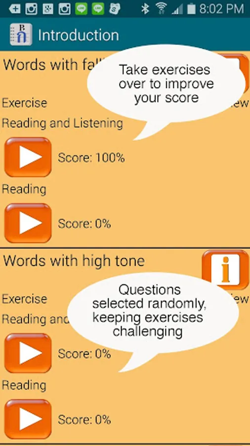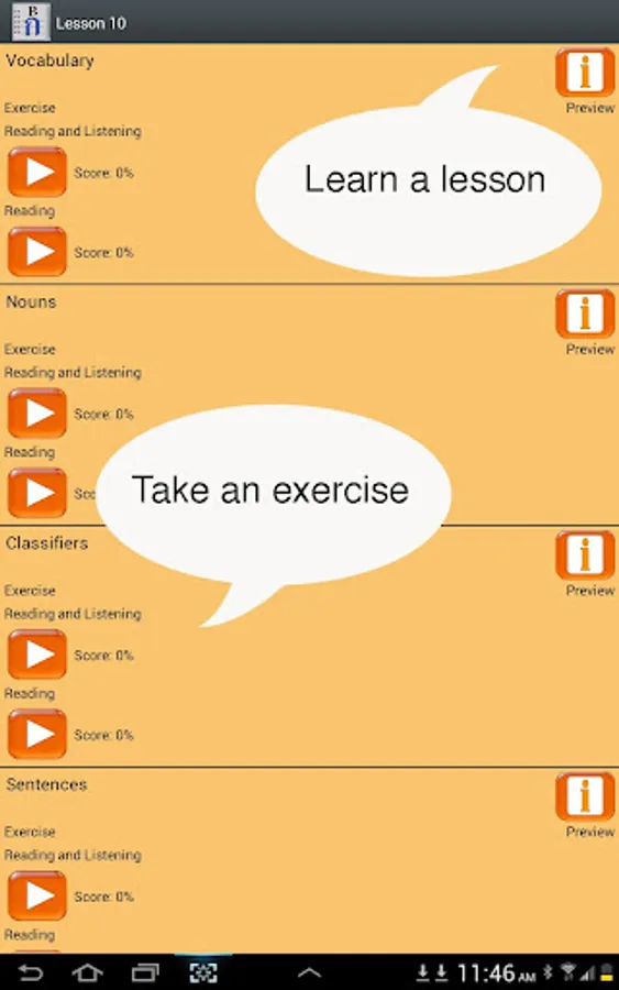 == Play each phrase over and over, or autoplay an entire lesson.