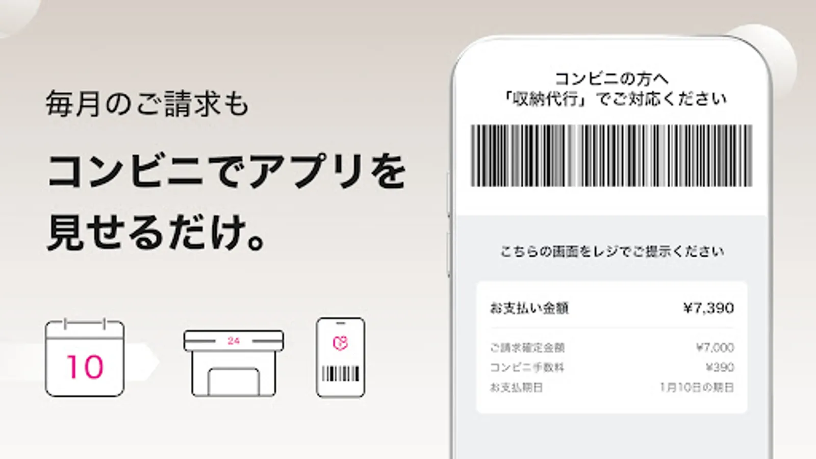 - Monthly bills can be paid by simply showing the screen at a convenience store with the app