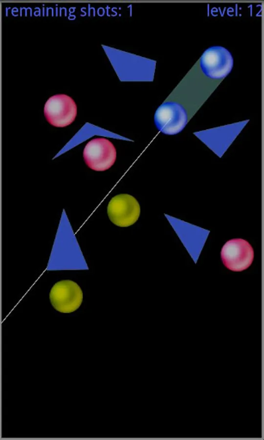 You sling the blue ball to take aim. You can see the line of vision when you sling the ball. The color of the trace of the blue ball, when you sling it, determines the speed of your shot.