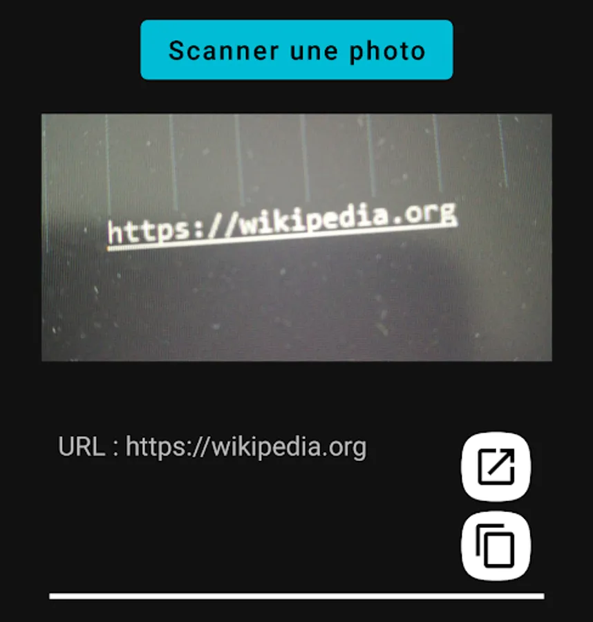 After scanning the photo, you can then open the URL in a browser or copy it.