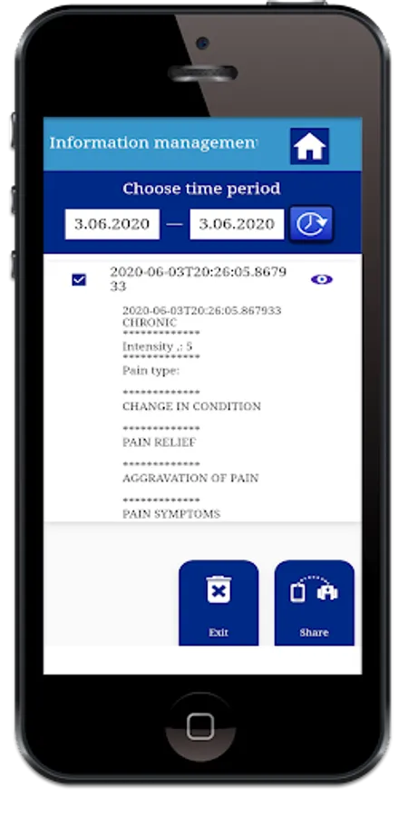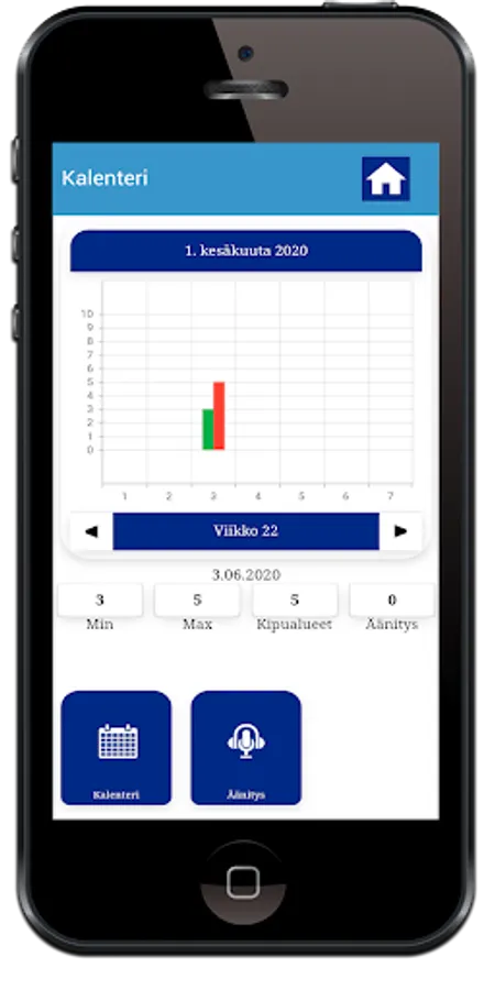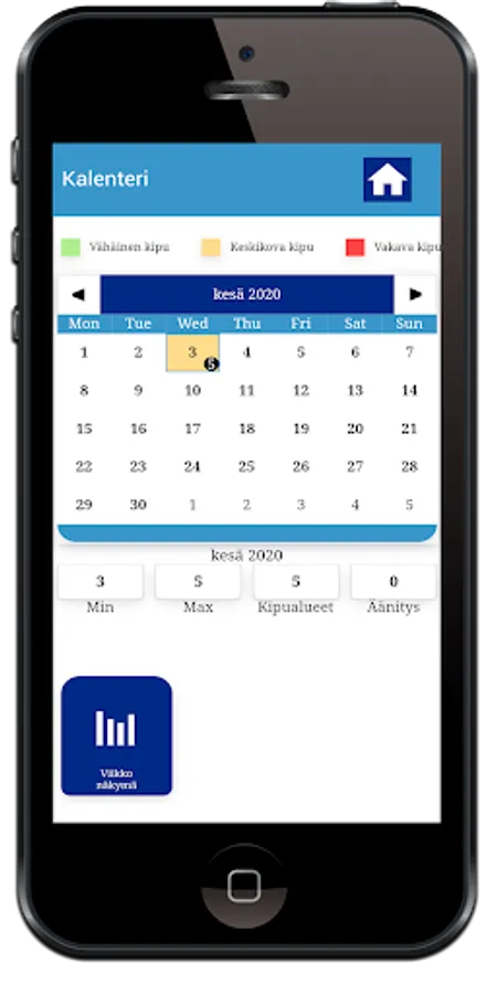 • Kipudata tallennetaan mobiililaitteen muistiin ja sitä voidaan tarkastella sovelluksen kalenterinäkymässä ja hallinnoida Tietojen hallinta näkymästä.