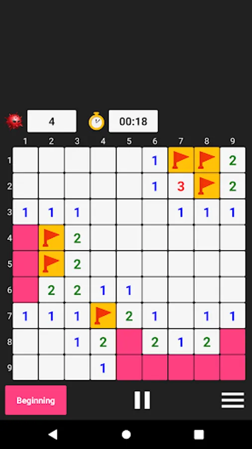 If you open all empty blocks without viruses, you win. If you get a virus, you lose.
