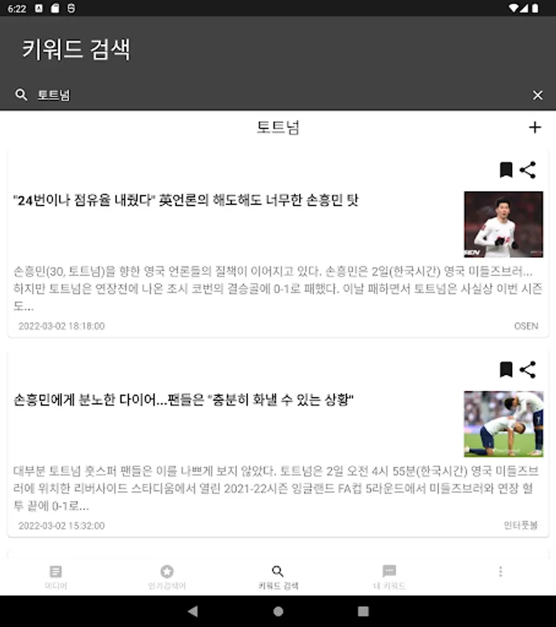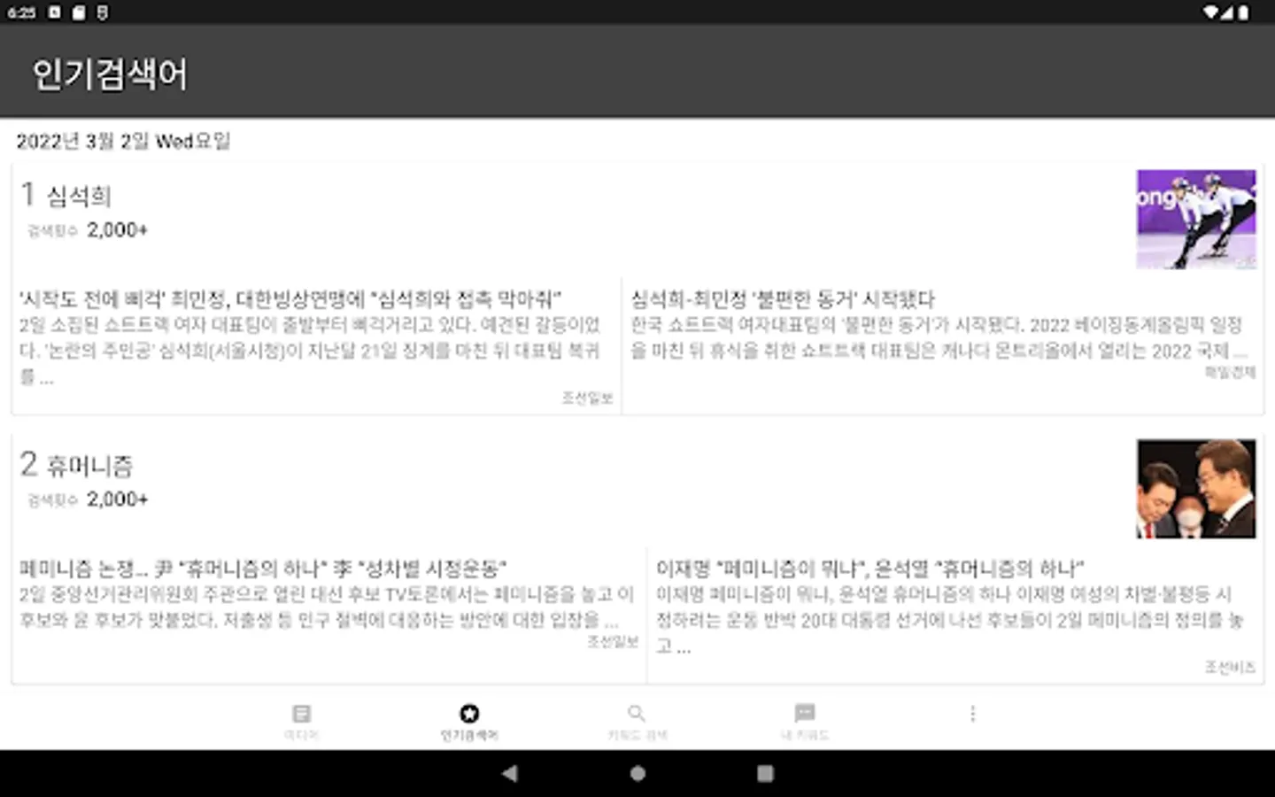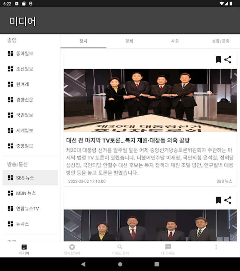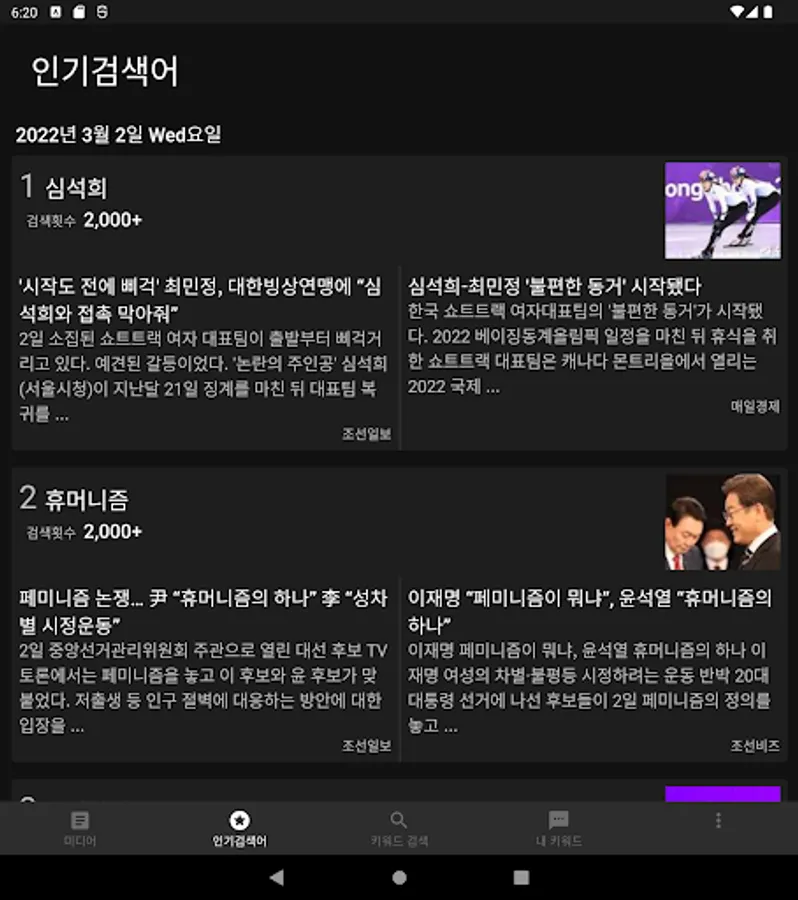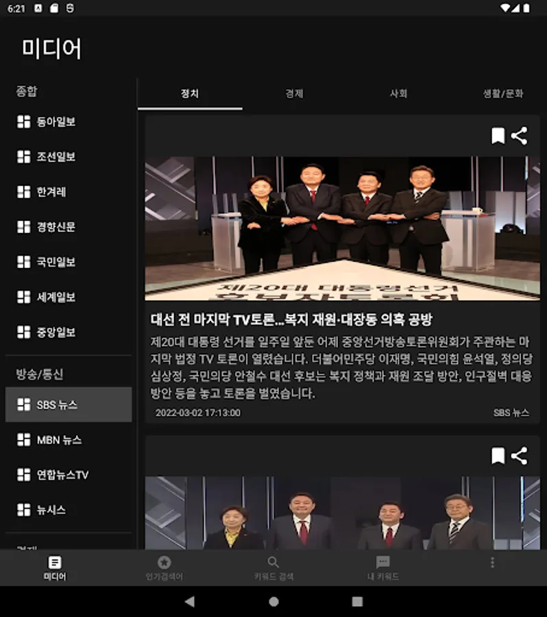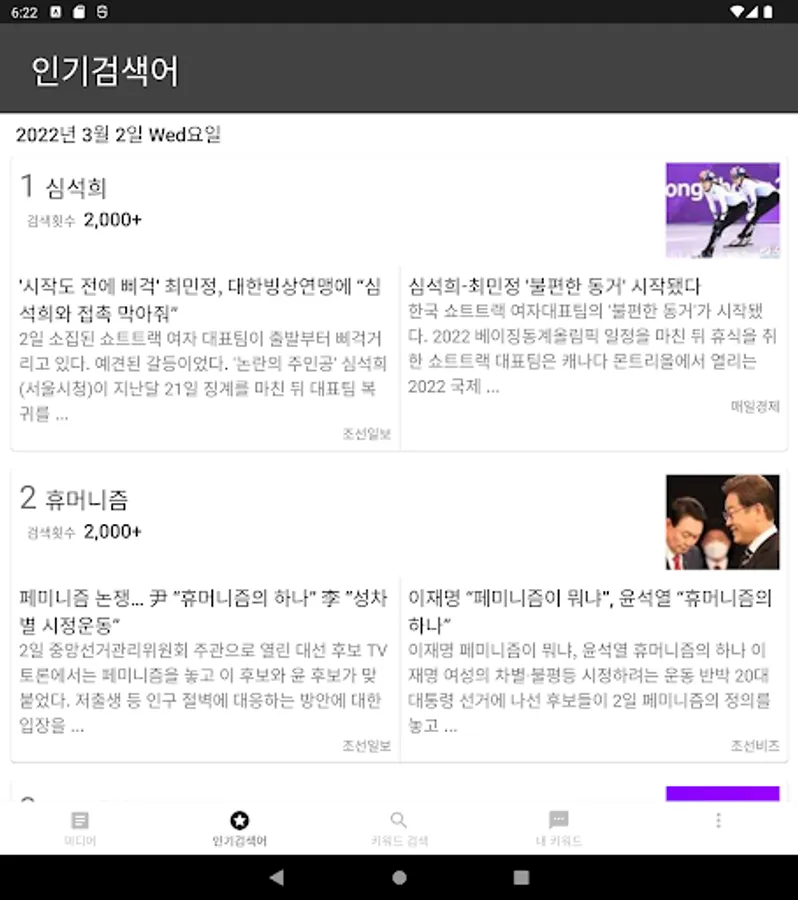 Keyword news is provided through NAVER Open API and Google News RSS service.