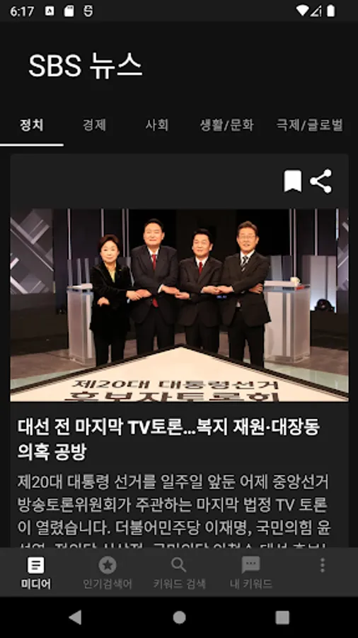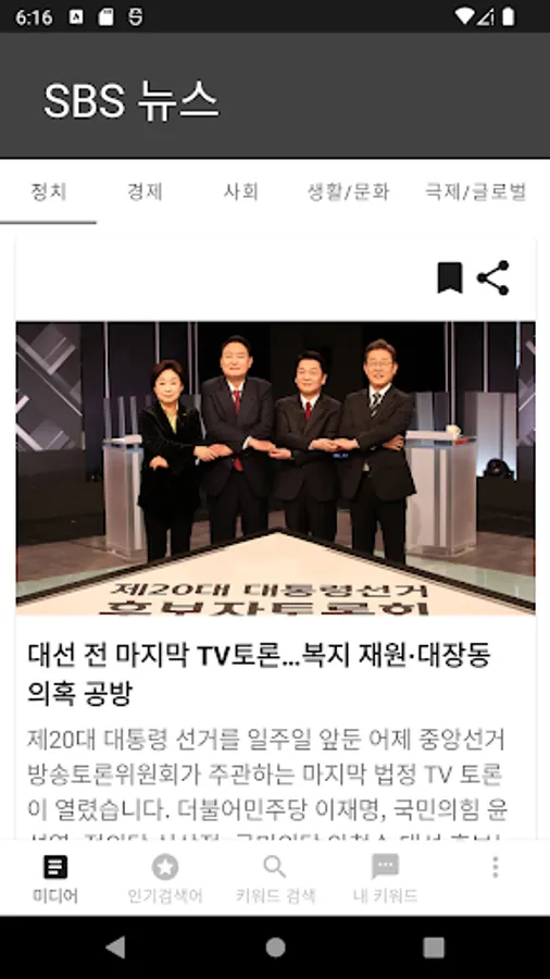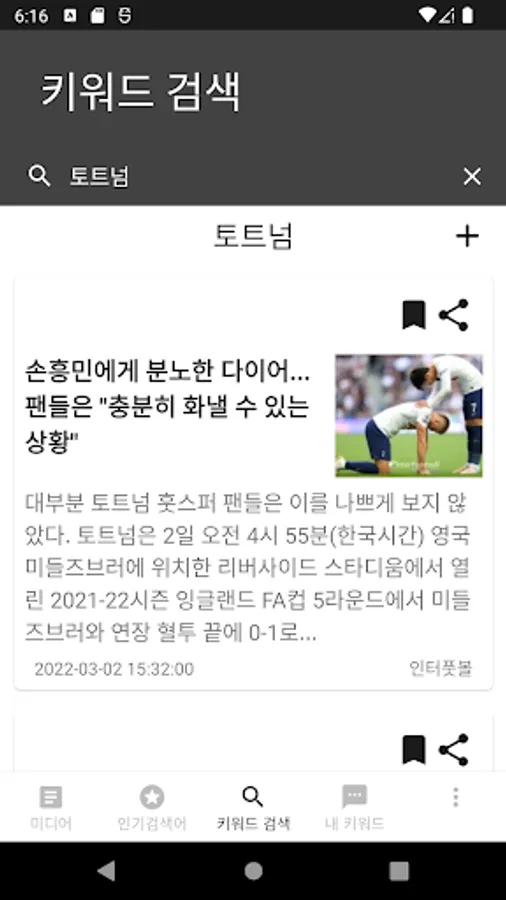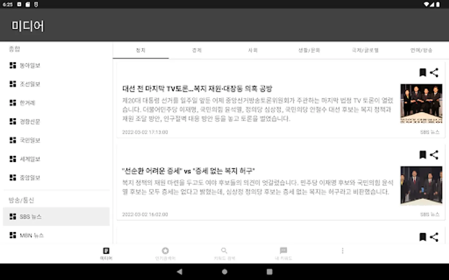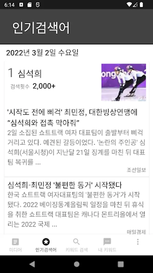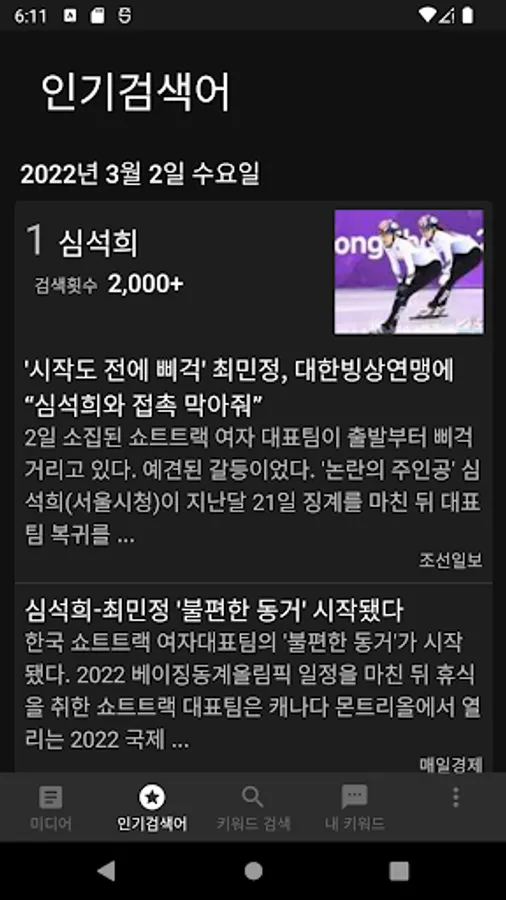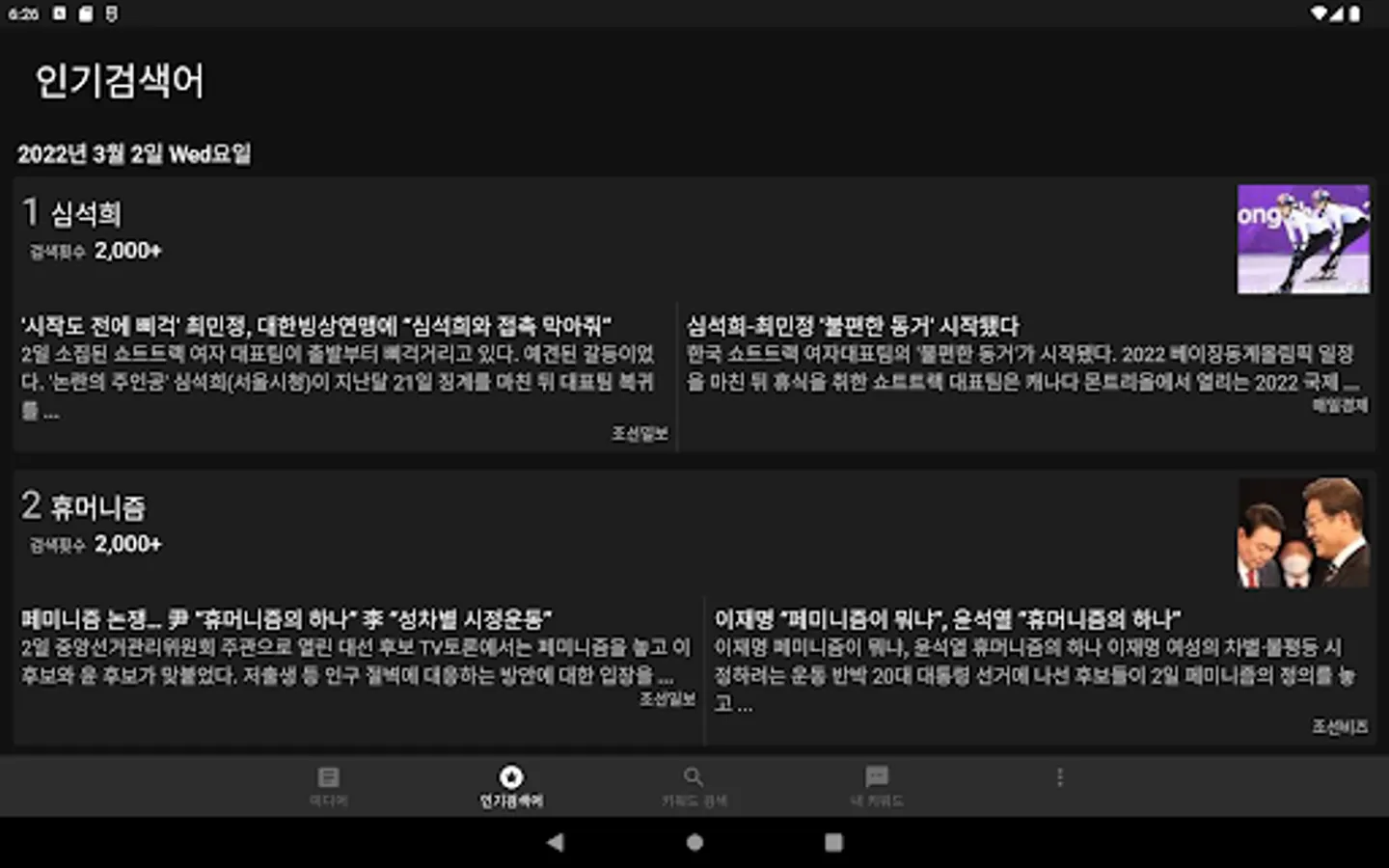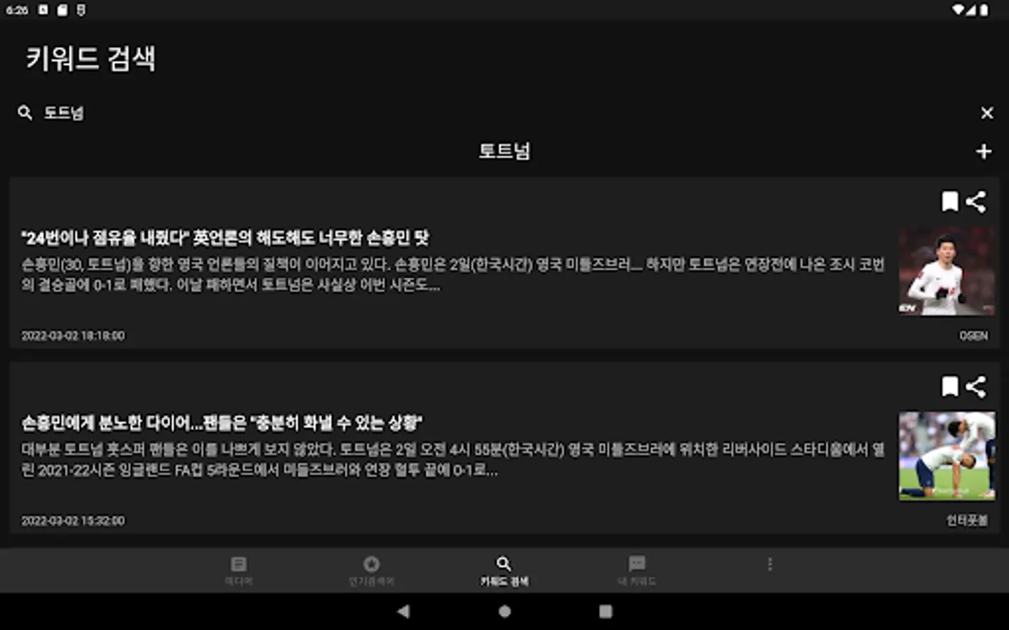 Keyword news is provided through NAVER Open API and Google News RSS service.