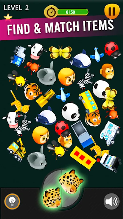 Swipe, find and match 3D pairs of identical objects from a huge mess. From cute animals, football, cars to household items and junk food, enjoy large collection of articles to untangle and clear the board. It is one the fun loving matching games.