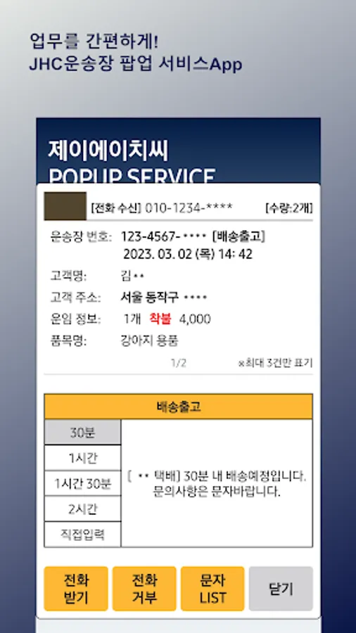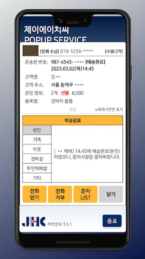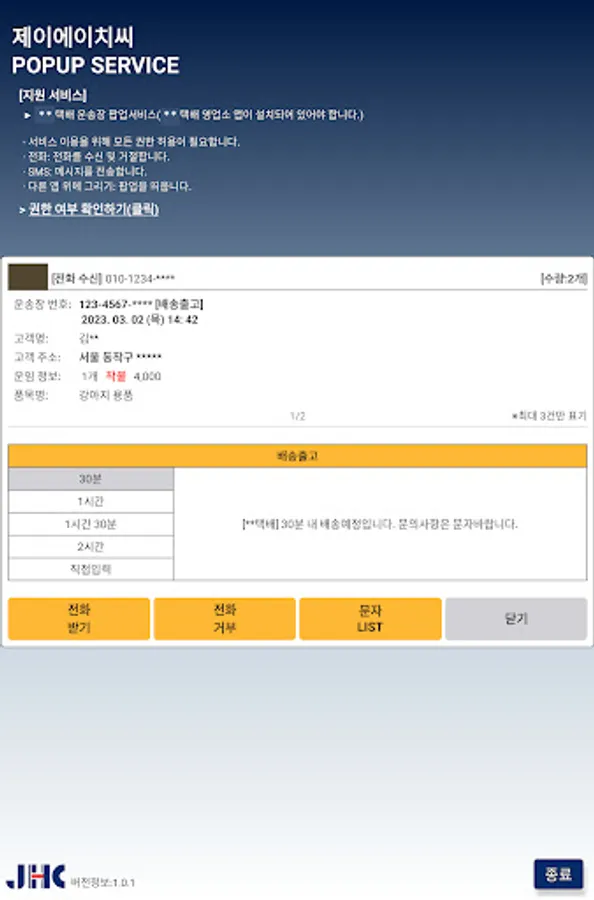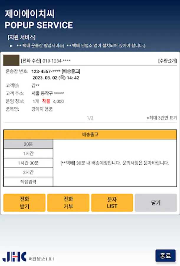 When a call is received, a pop-up window is displayed so that the user can accept or reject the incoming call, and the user can select a message in a specified format and send it to the recipient.