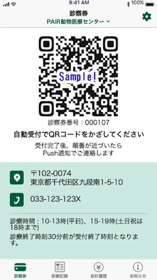 ・ The consultation ticket is displayed on the screen, and you do not need to use a paper consultation ticket.