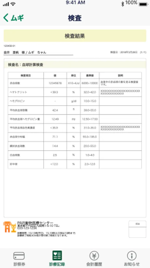・ The result of the examination received at the hospital is sent to the app and can be checked at any time. (※ All test results are not sent.)