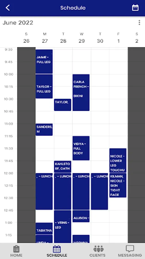 2. Admins can view the schedules for the whole salon, spa, or tattoo shop.