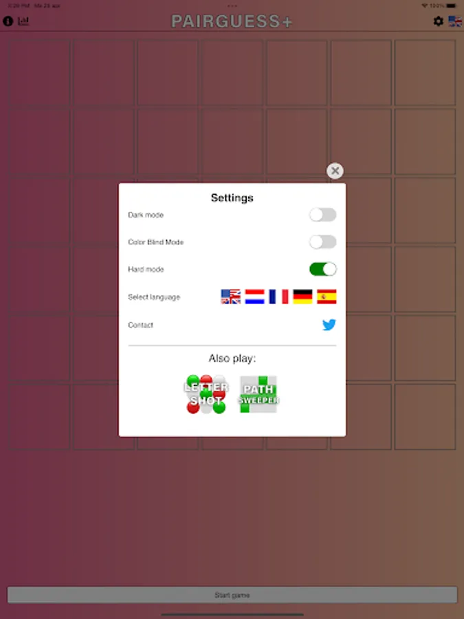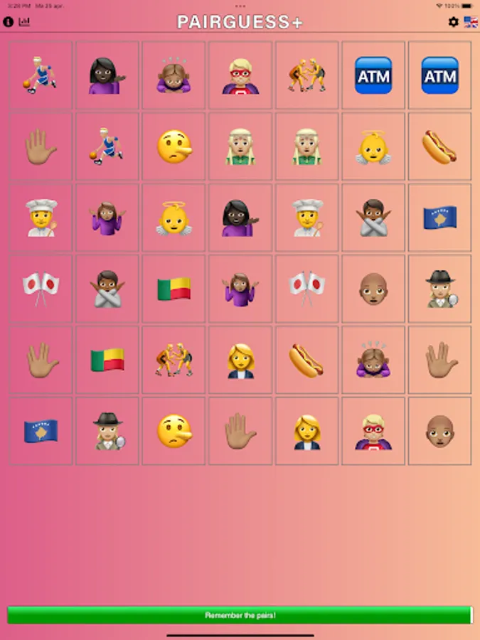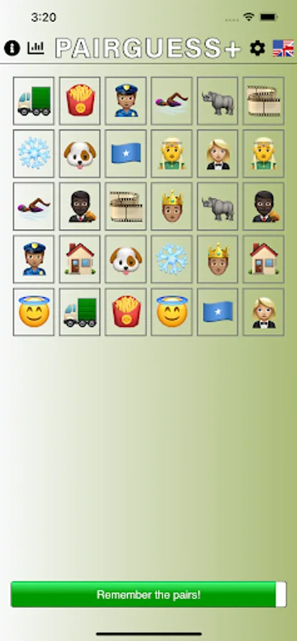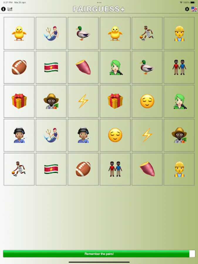 Pairguess+ is a memory game in which you need to find all pairs to win.
