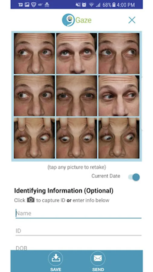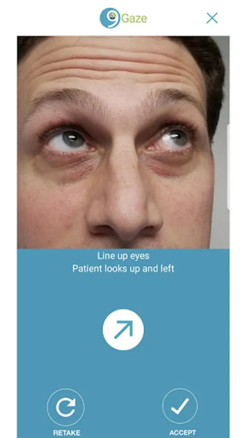 9 Gaze is an easy, quick, and efficient way to document eye motility and strabismus in the 9 cardinal positions of gaze. The app provides an on-screen guide for eye positioning to assist with image consistency through all 9 photographs. 9 Gaze app automatically creates a composite image of the 9 photographs for easy exporting. You can email the image to yourself for importing into your electronic medical record or save to your device.