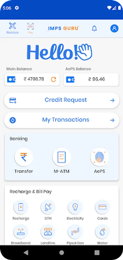 + Recharges: All prepaid Mobile and DTH recharge are available at the IMPS guru app. This service gives retailers the opportunity to do recharges, check best available plans and earn industry best commissions and offers across all Telecom n DTH operators.