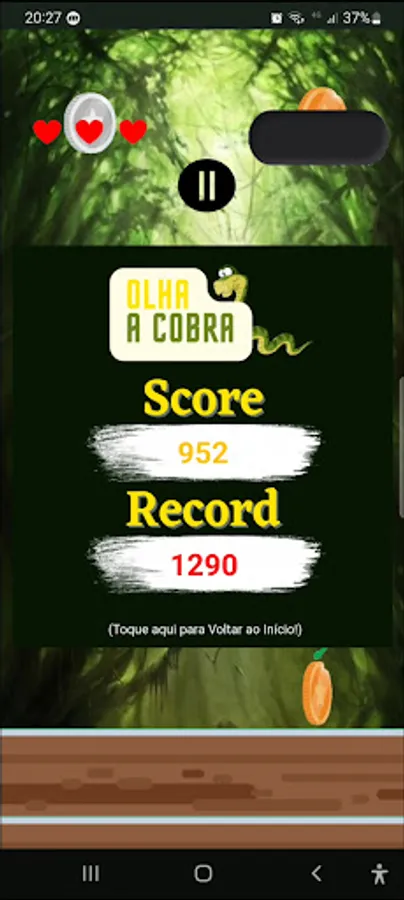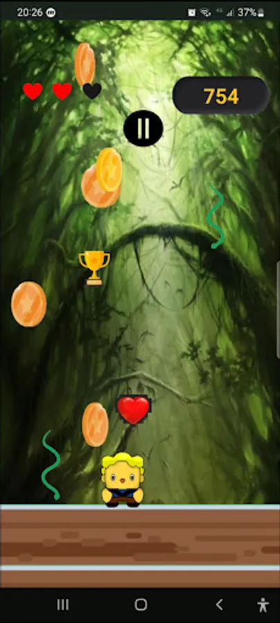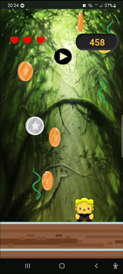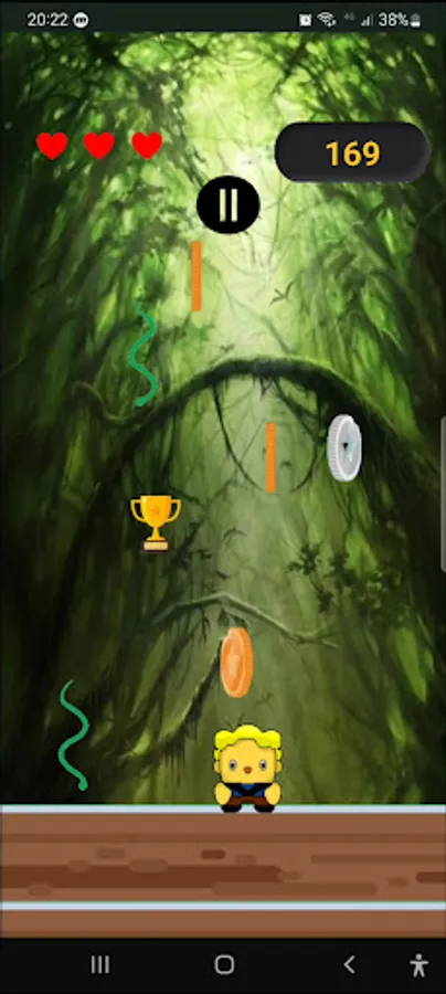 Game where the main character has to run away from snakes and not let them touch so that he doesn't lose any of his lives, he has to collect as many coins as they fall and trophies that are rare but give 100 points each.