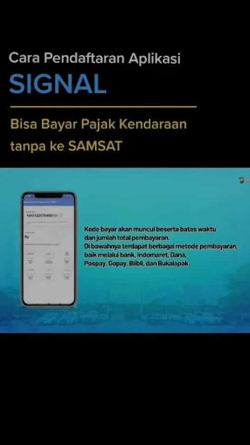 This Online STNK Extension Info is an application that contains a brief guide on how to pay vehicle tax or extend your vehicle STNK online using only a smartphone via the Signal application.