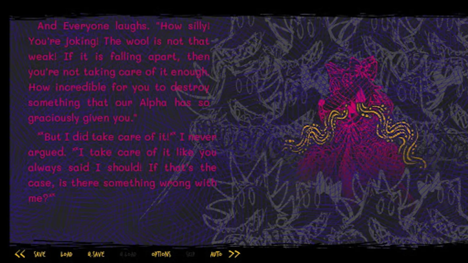 Wolf's Wool is an abstract visual novel about wondering what you are under the crumbling cover after escaping the society you grew up in.