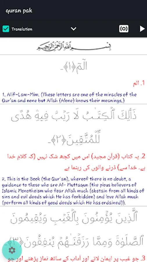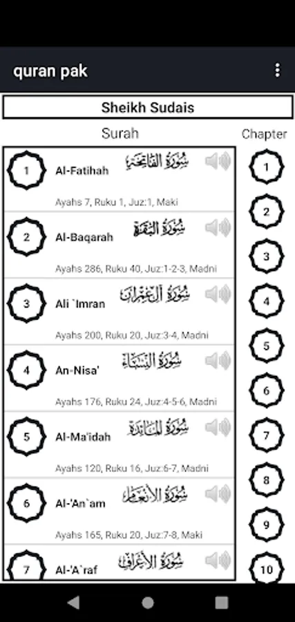 Application Displays Quran in Chapters and Surah vise. Having translation in urdu and english audio with diffrent qari and highlight as well.