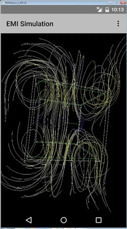 A simulation of electro-magnetic fields generated by pairs of coils arranged in a cube, like you encounter in Helmholtz-like arrangements for EMI Field compensations.