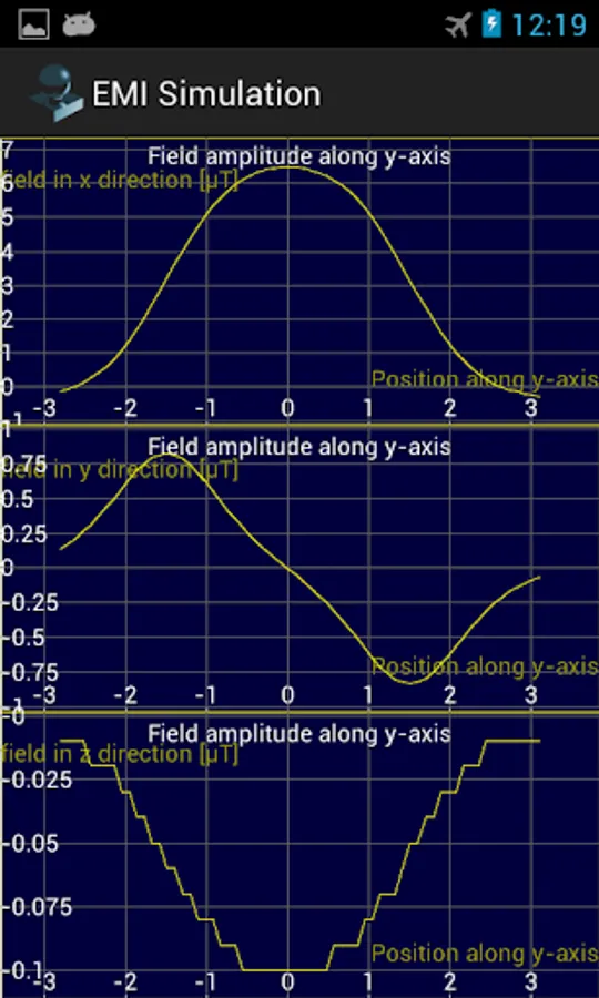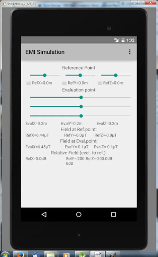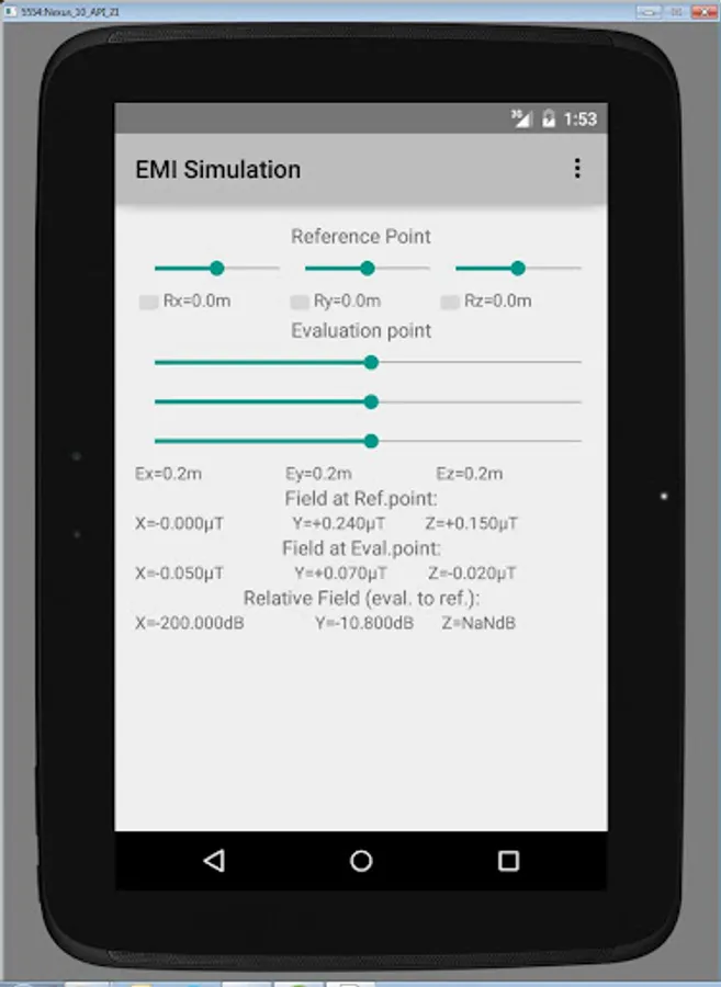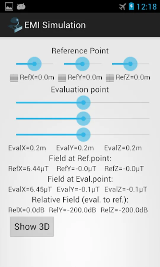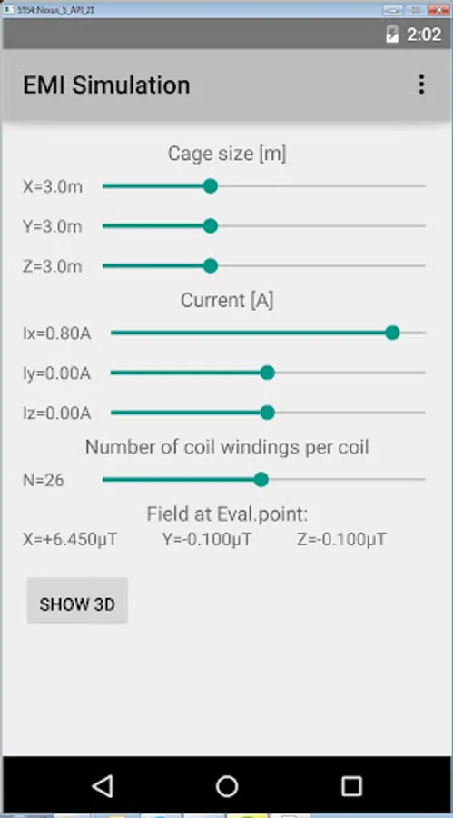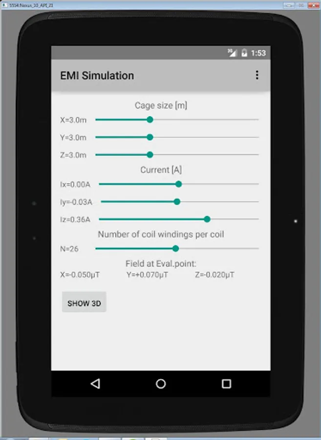 You can set the dimensions of the coil arrangement and the current through each pair and evaluate the amplitude of the field at any point in 3D space by moving sliders. You may have a look at a 3D-evaluation of the field lines (GLES2.0-device needed).