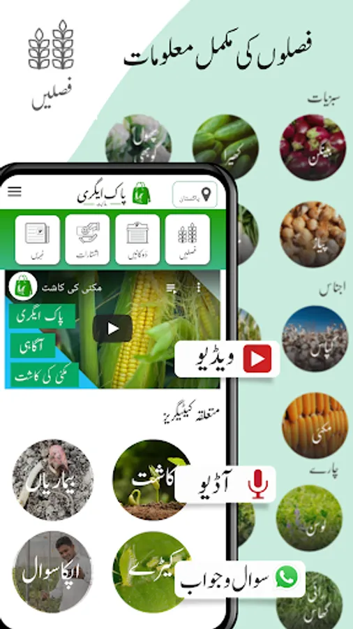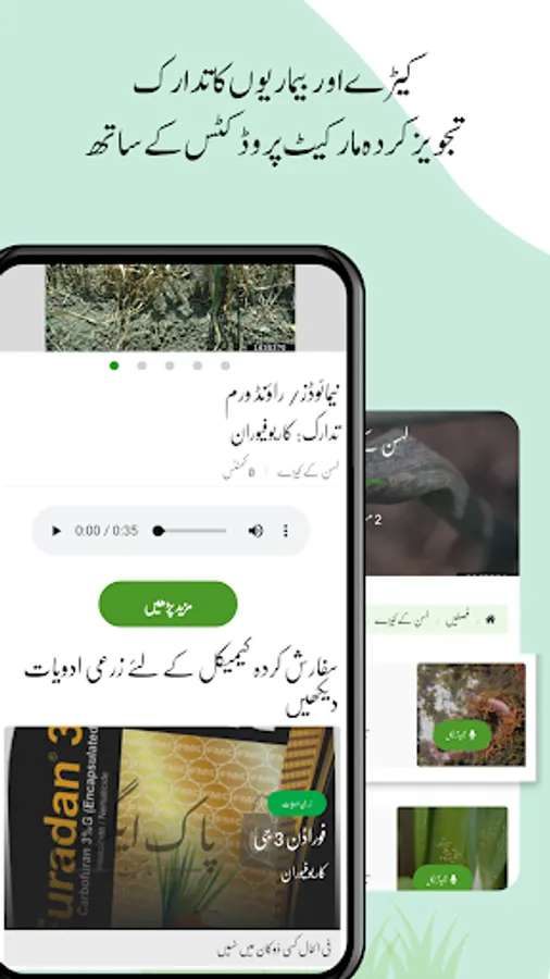 Crop-wise agricultural information with audio. Market products are also suggested for the treatment of diseases.