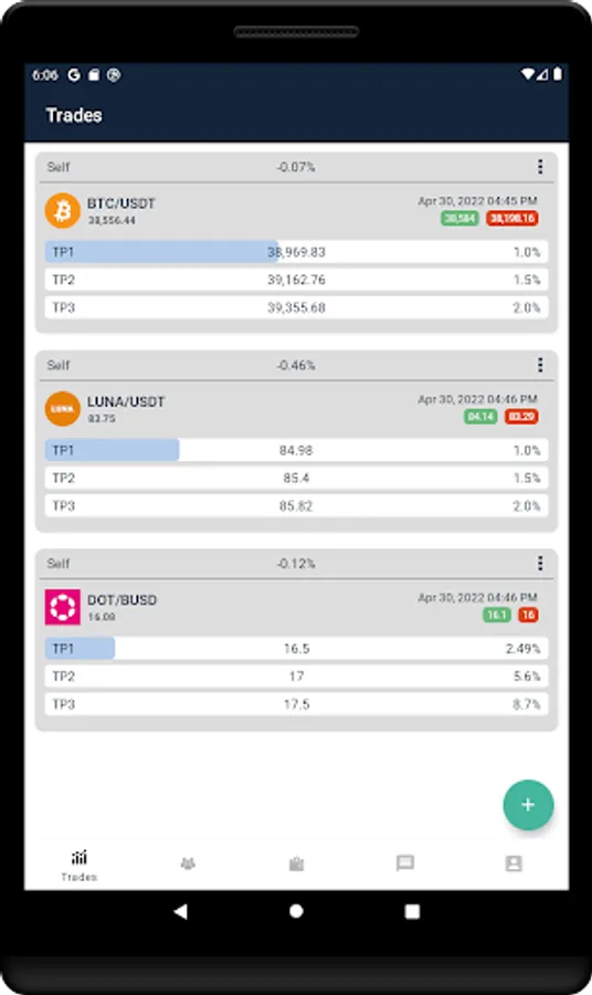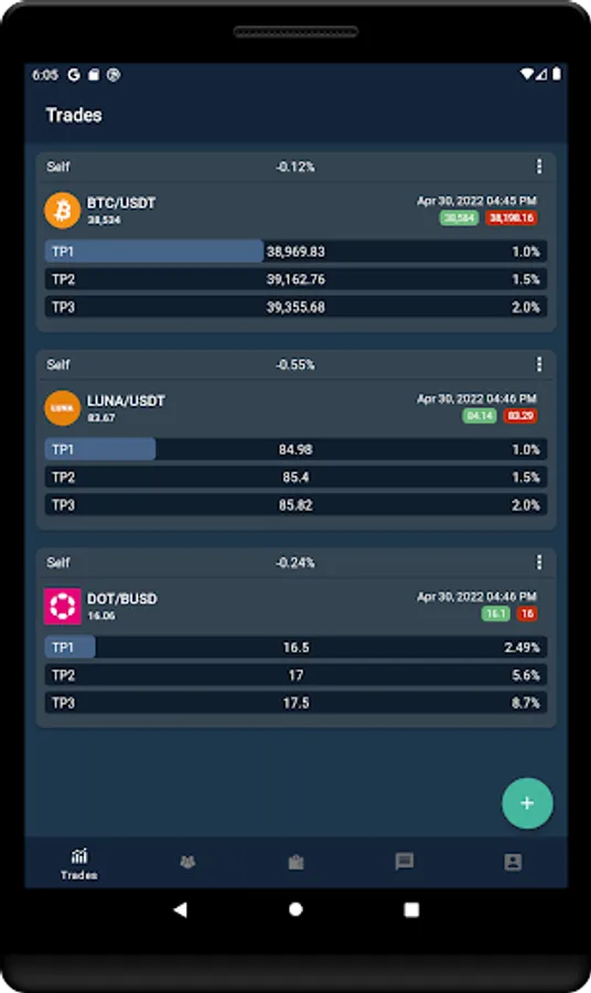 CoinTrack is designed to track and monitor your crypto trades. You just need to enter your take profit and stop loss prices and the app will keep track of your trade status. It will send you push notifications when a trade target is completed (i.e hit TP or SL).
