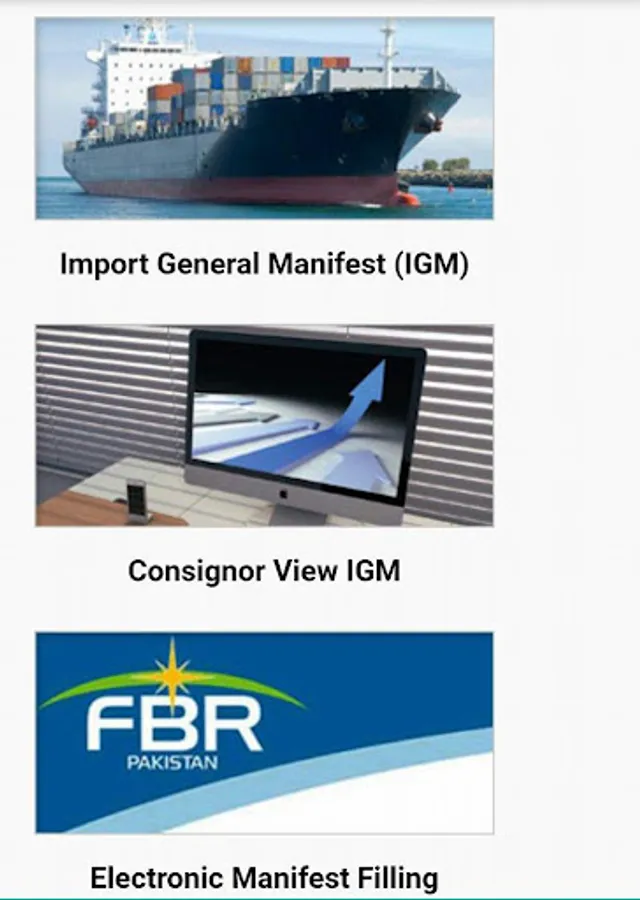 PakCustoms.org is your first and best source for information about useful links like online NTN verification, fbr.gov.pk efiling system, daily updated IGM (Import General Manifest), EGM (Export General Manifest), Custom press release, sales tax guide, Sales Tax Registration, withholding tax, Rebate claim , Trade Statistics and Analysis, tax return filing, Import Tariff, Customs Tariff, Import Policy Order 2013, Export Policy Order 2013, Pakistan Budget 2017-18, Income Tax Forms, Federal Excise Duty, Important downloads , Mobile Phone Applications, Pakistan rupee exchange rate, Universal Currency converter, Karachi Port Arrivals, Karachi Port Cargo Handling, shipment tracking, Electronic Export Manifest, Electronic Import Manifest, Export Automated System, Container tracking, Air cargo tracking, Bill of lading (B/L) tracking, Post/EMS tracking, World Clock Time, Vehicle tax verification, apply for NTN, consignor view IGM information, Flight Schedules for Jinnah International Airport Karachi, Allama Iqbal Airport Lahore, Benazir International Airport Islamabad. Here you will also find latest news regarding Pakistan trade & business activities and topics relating to issues of general interest.